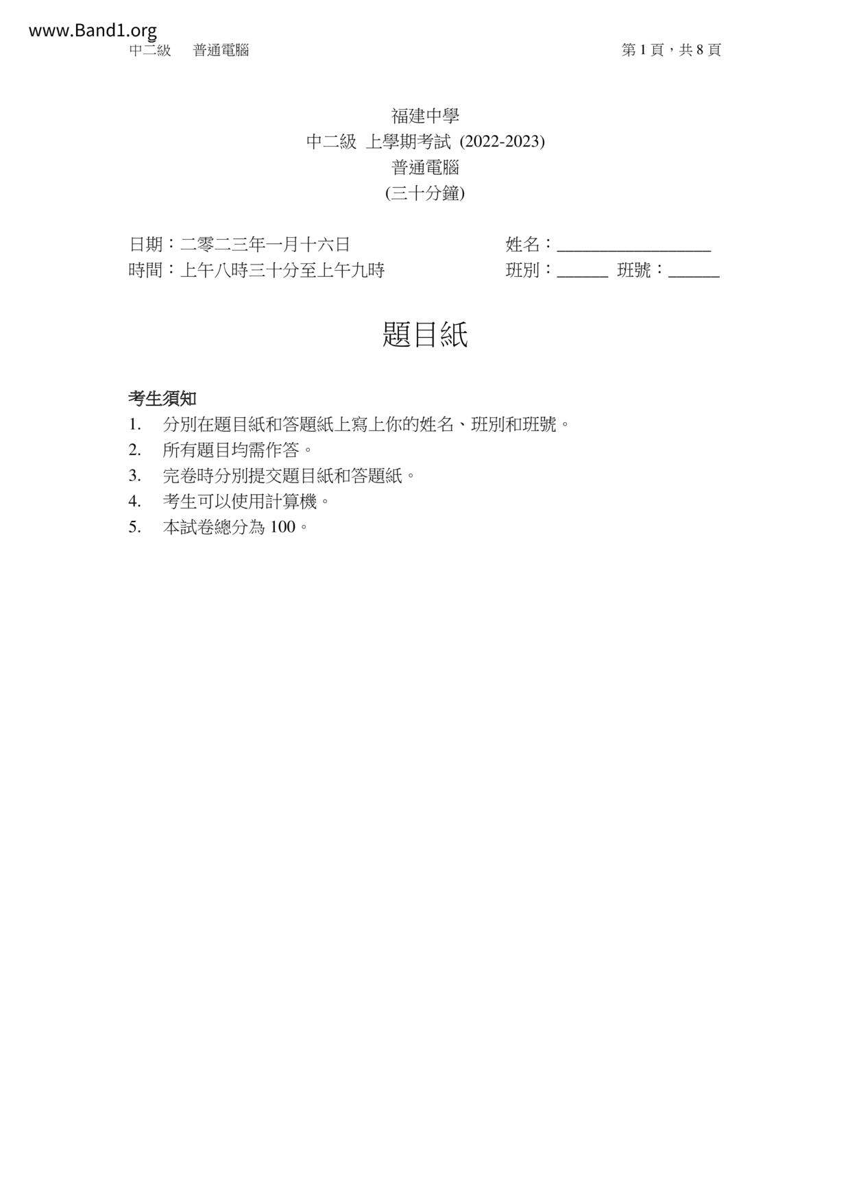 Deprecated: substr(): Passing null to parameter #1 ($string) of type string is deprecated in /home/band1.net/public_html/index.php on line 682 ★ 中二各科試卷pdf F2 Past Paper - 香港中小學試卷pdf試題下載 ★
