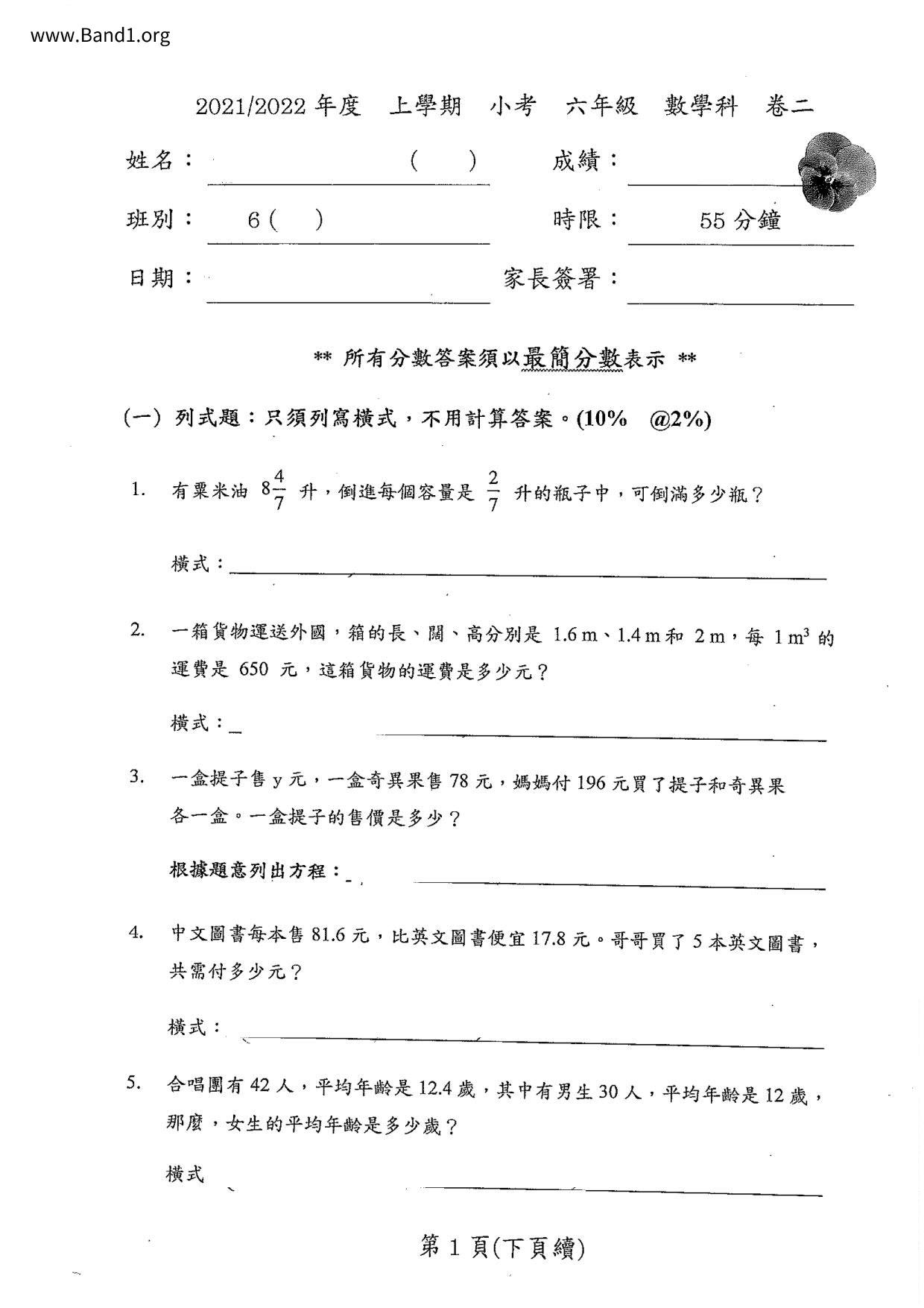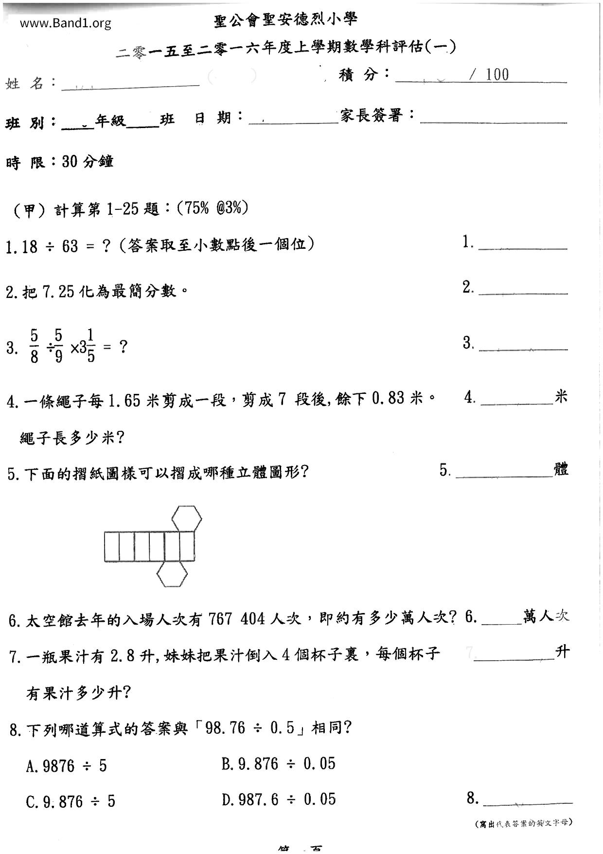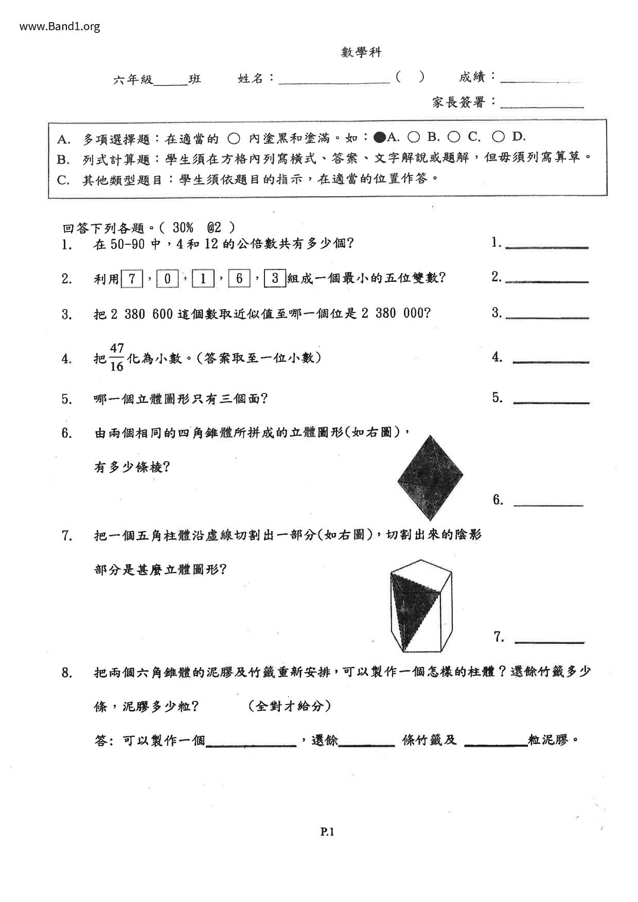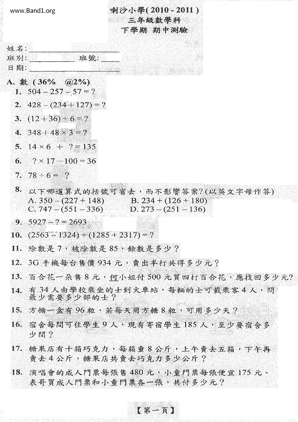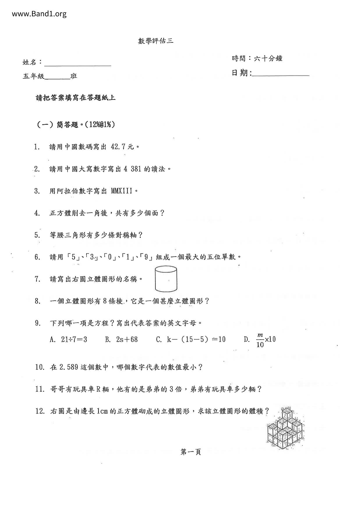 Deprecated: substr(): Passing null to parameter #1 ($string) of type string is deprecated in /home/band1.net/public_html/index.php on line 689 ★ 中小學數學試卷pdf Maths Past Paper - 香港中小學試卷pdf試題下載 ★
