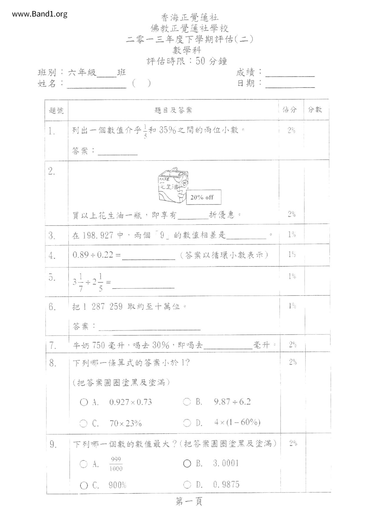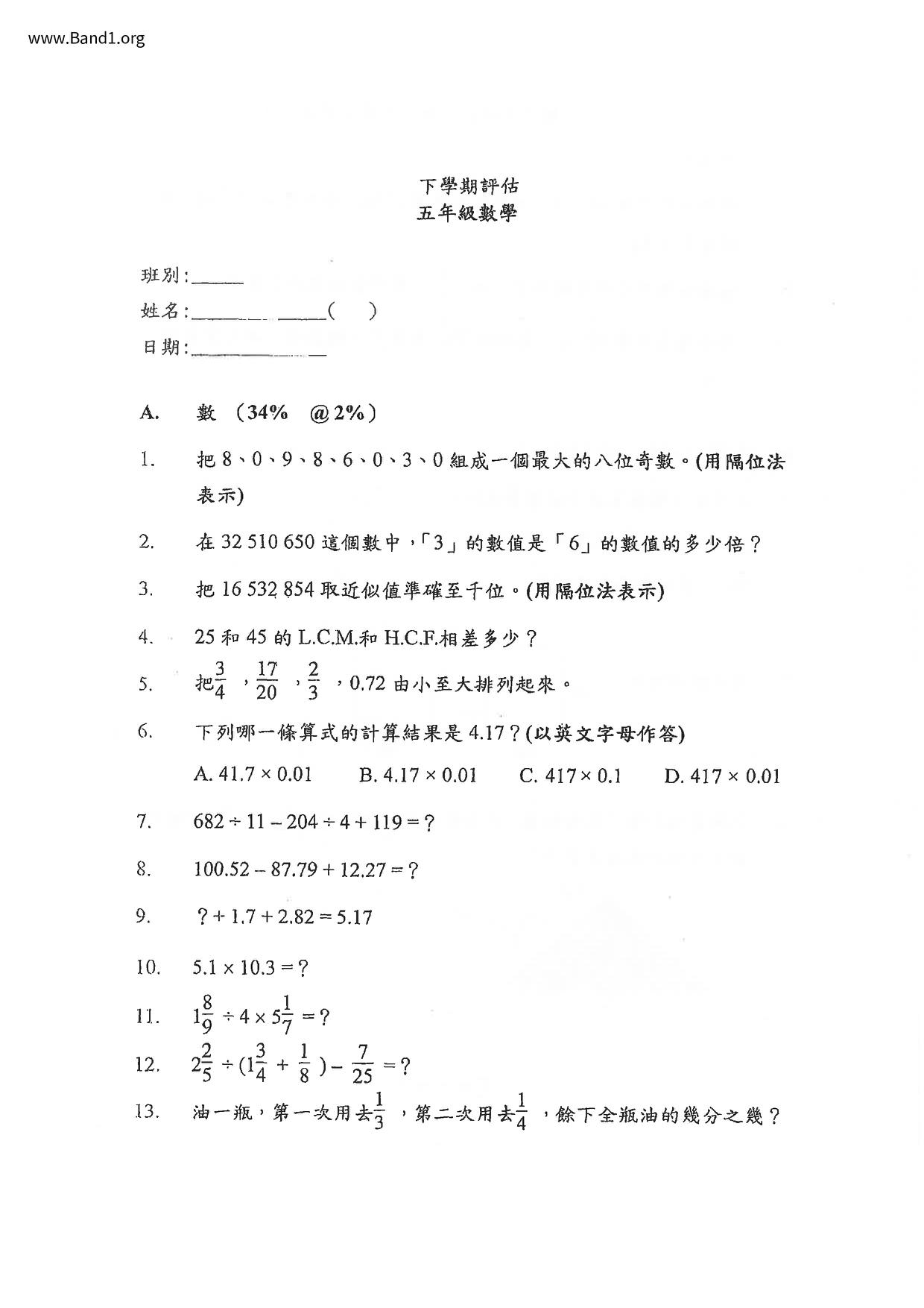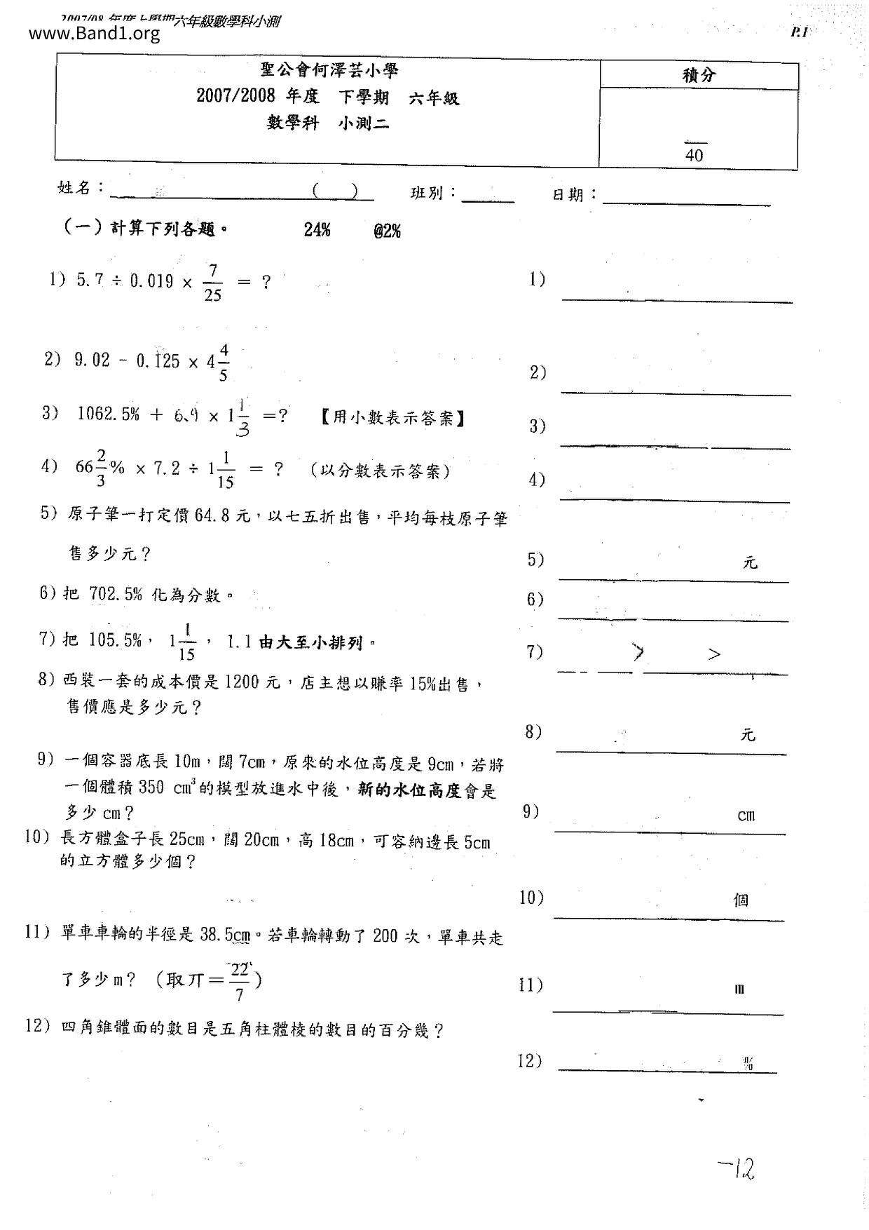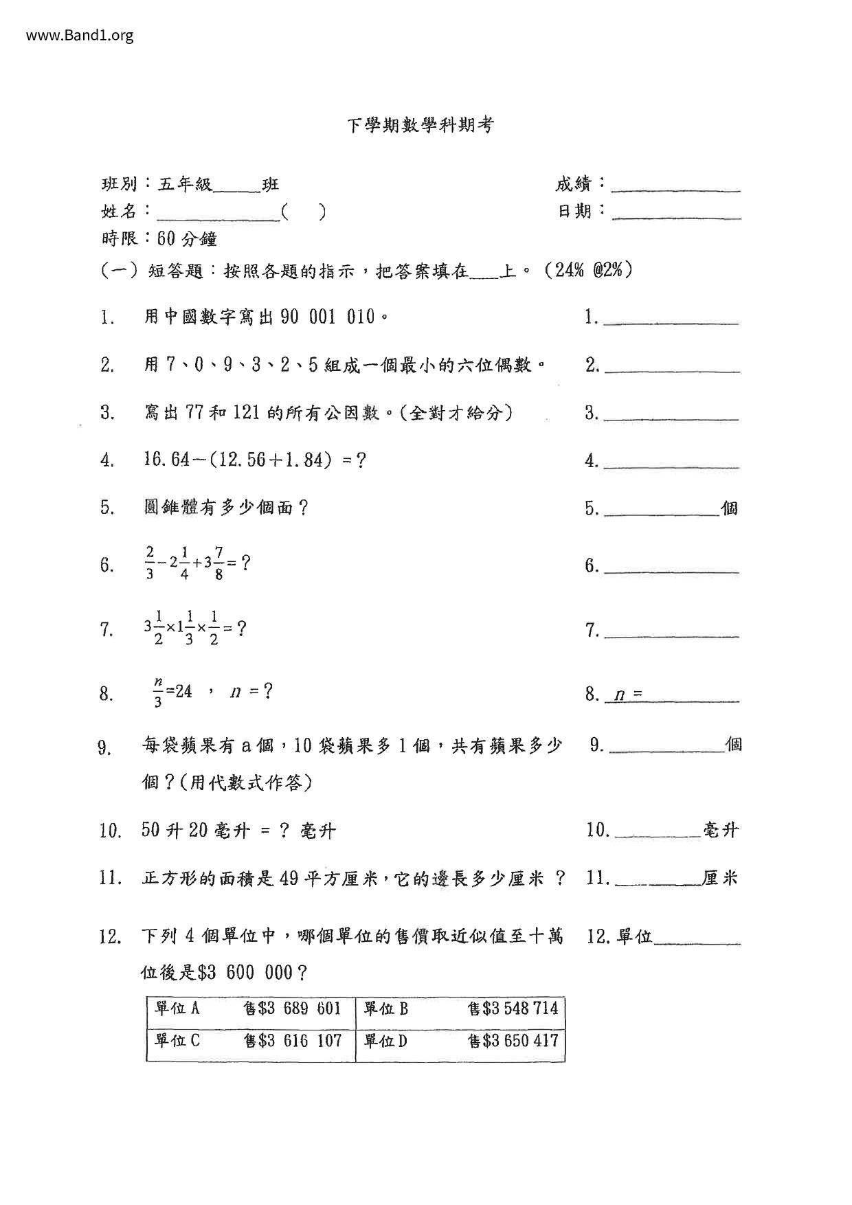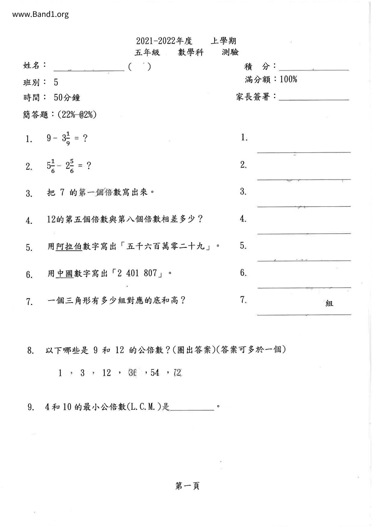 Deprecated: substr(): Passing null to parameter #1 ($string) of type string is deprecated in /home/band1.net/public_html/index.php on line 689 ★ 中小學數學試卷pdf Maths Past Paper - 香港中小學試卷pdf試題下載 ★