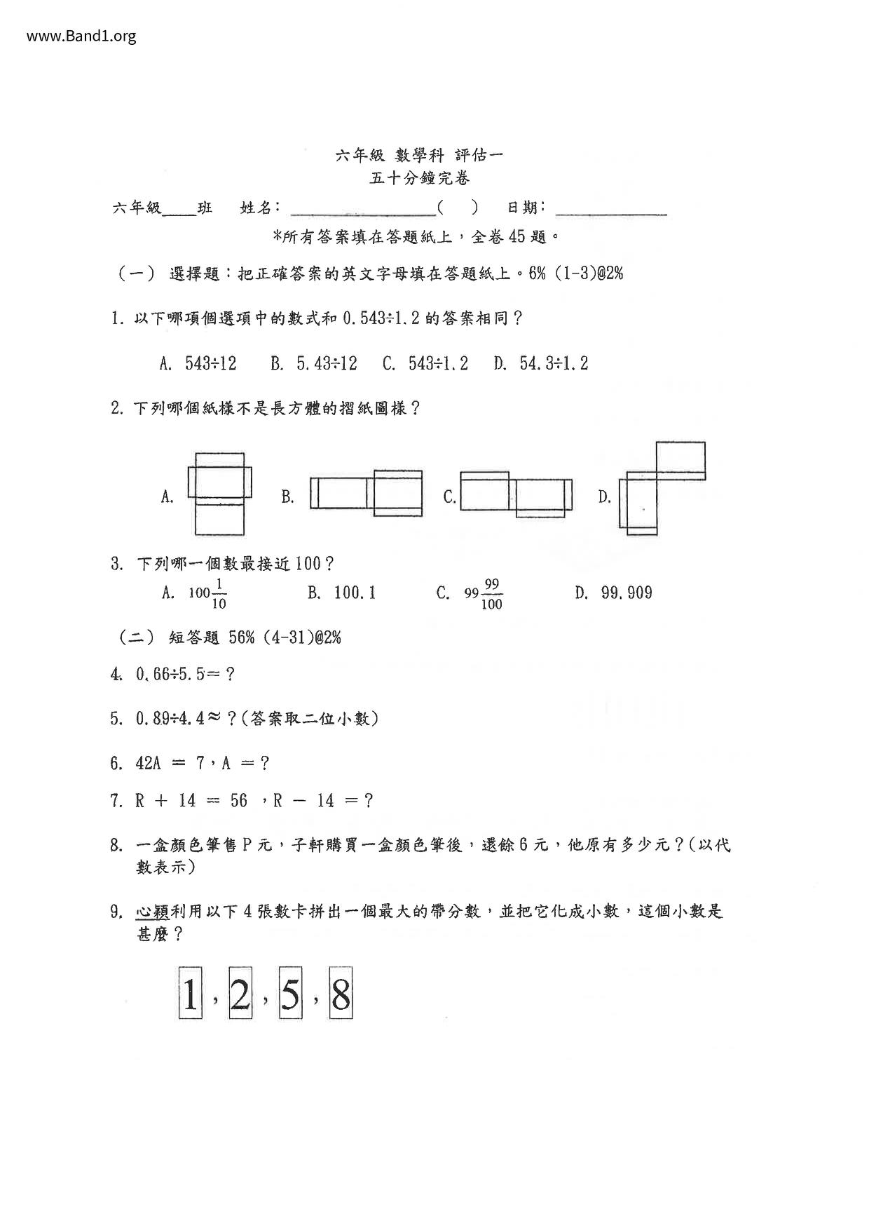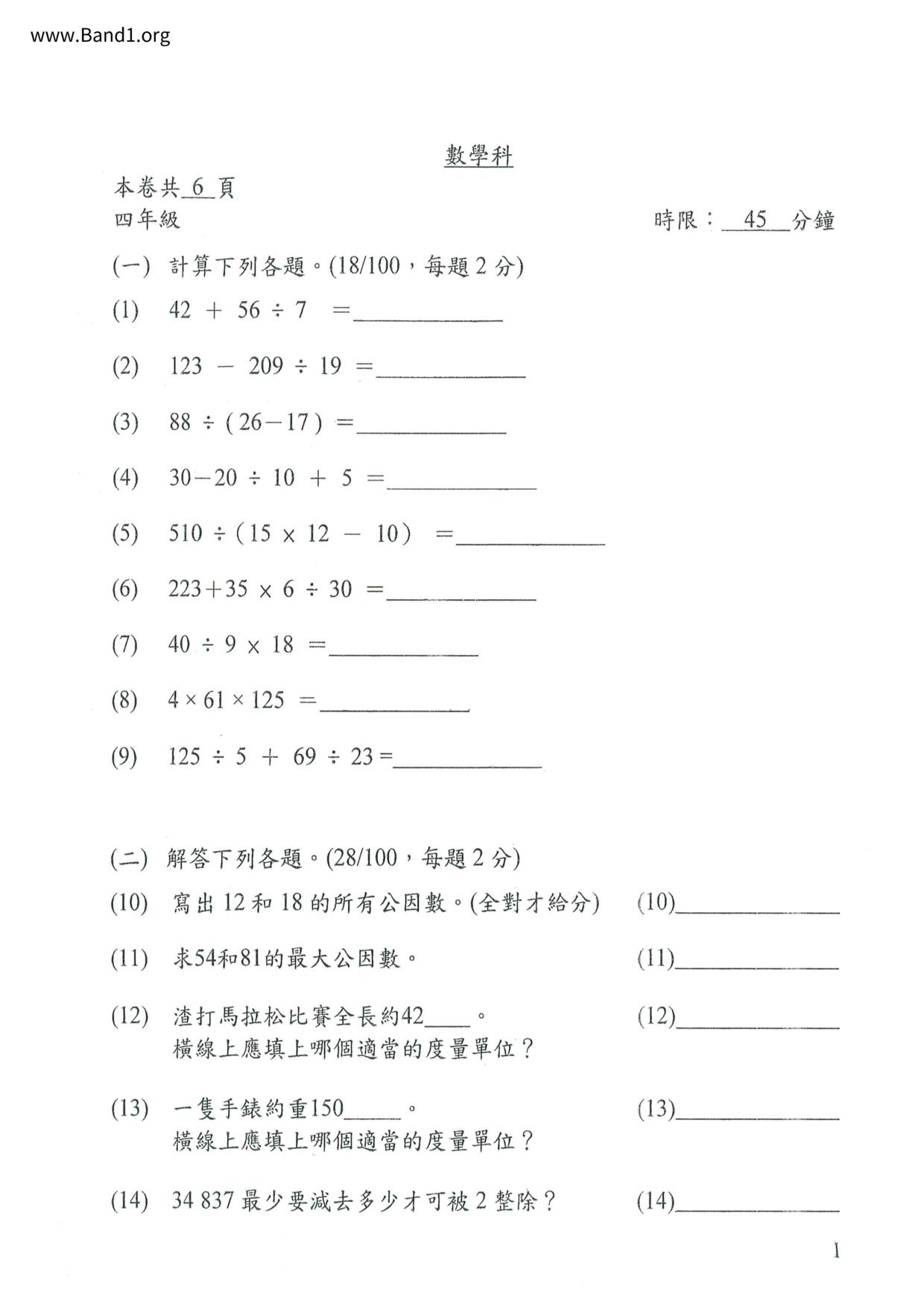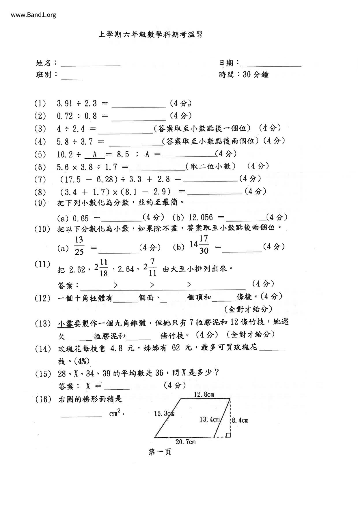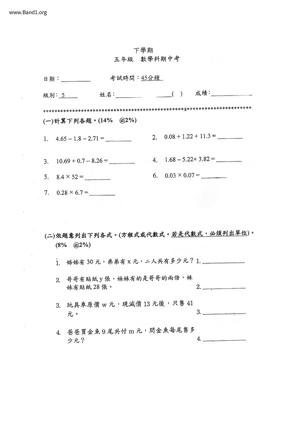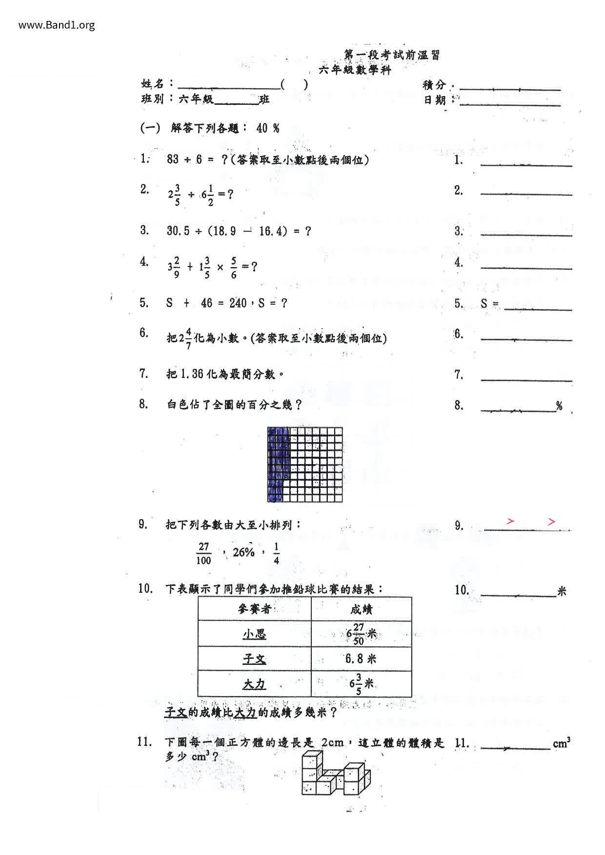 Deprecated: substr(): Passing null to parameter #1 ($string) of type string is deprecated in /home/band1.net/public_html/index.php on line 689 ★ 中小學數學試卷pdf Maths Past Paper - 香港中小學試卷pdf試題下載 ★