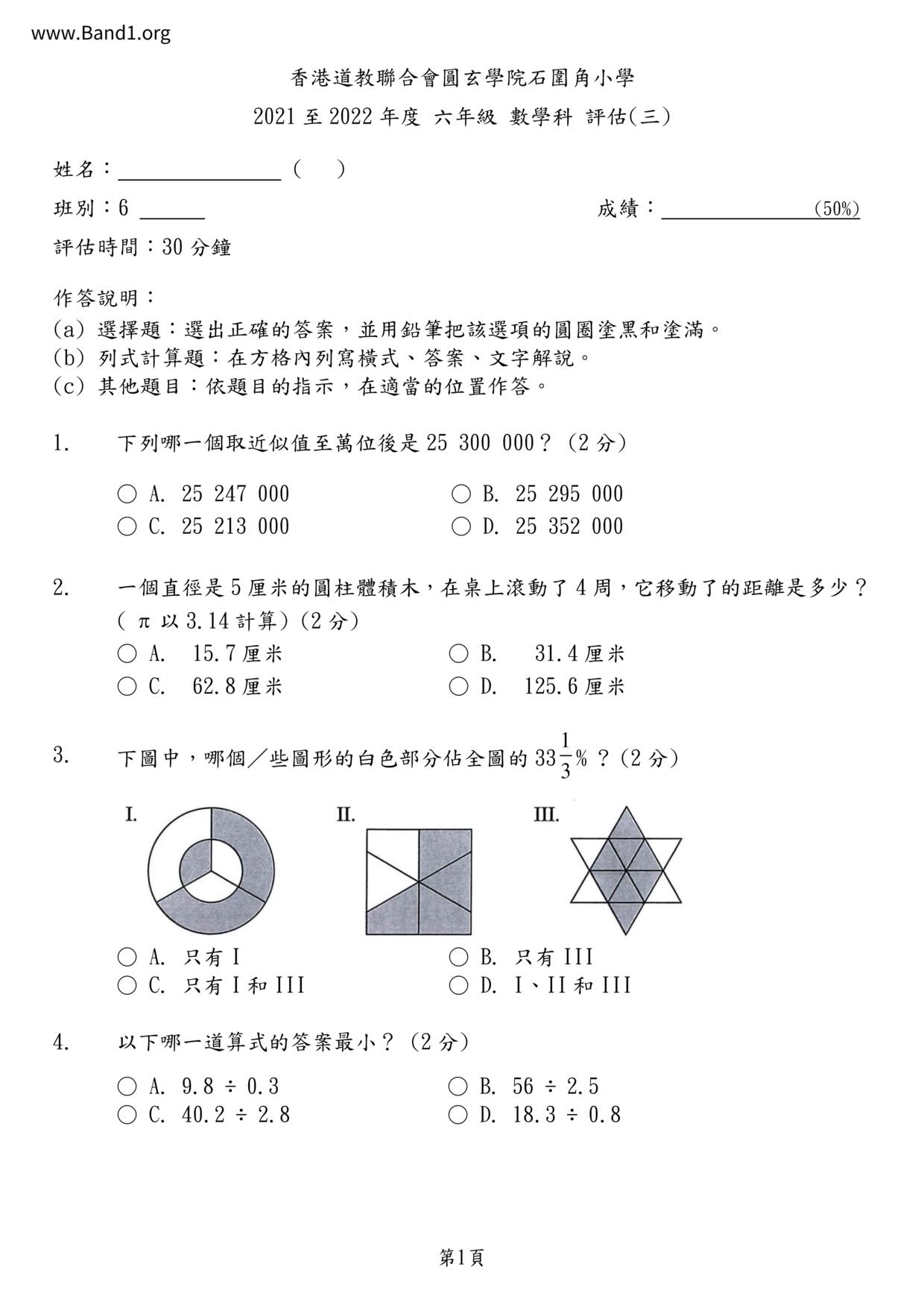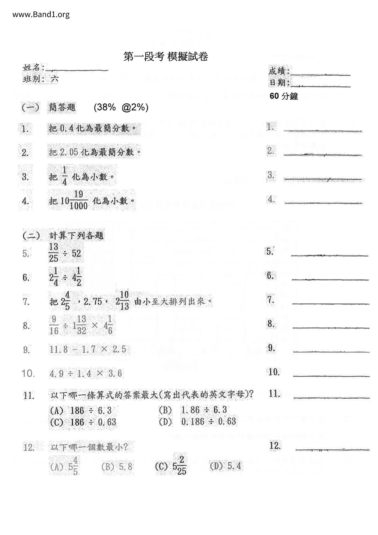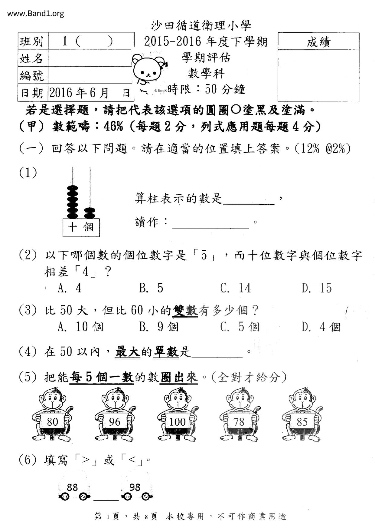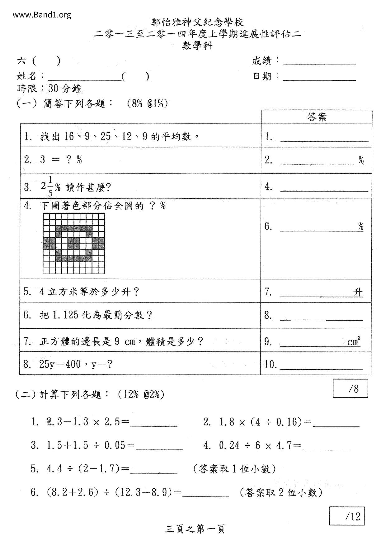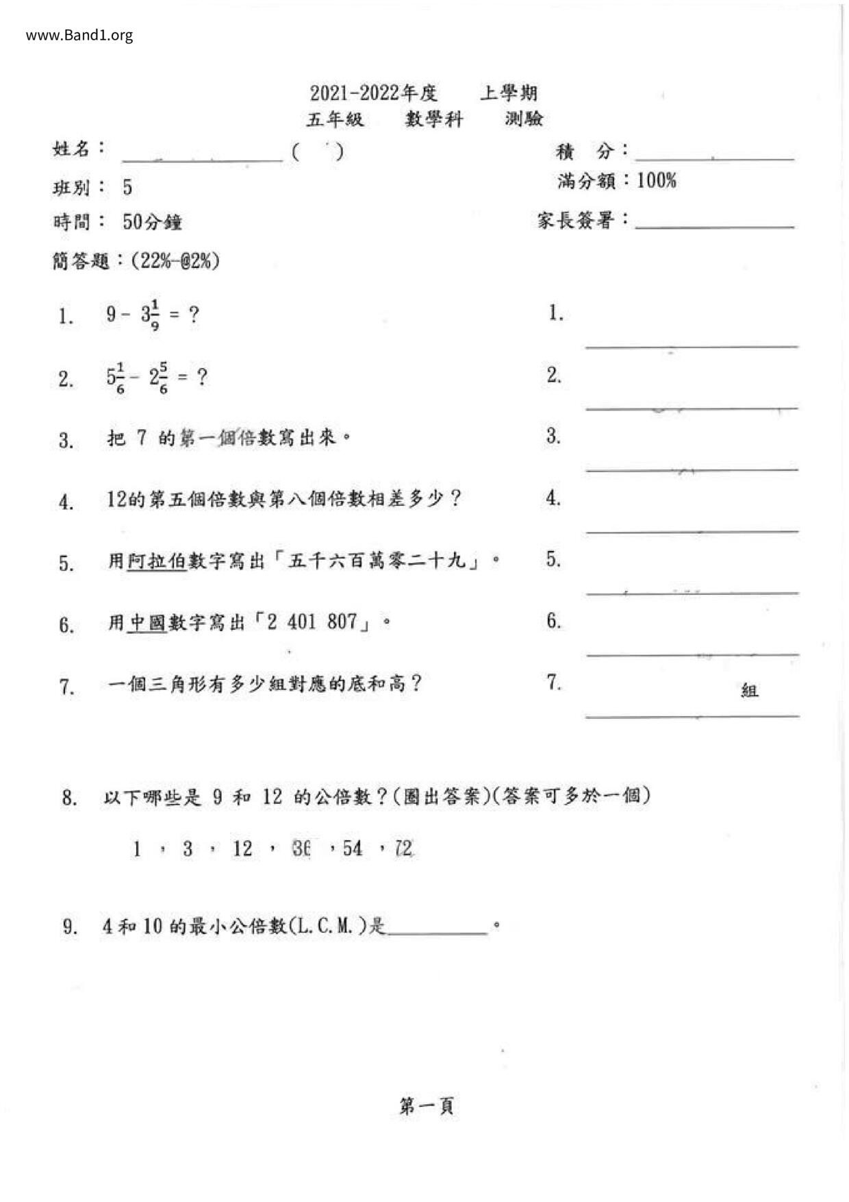 Deprecated: substr(): Passing null to parameter #1 ($string) of type string is deprecated in /home/band1.net/public_html/index.php on line 689 ★ 中小學數學試卷pdf Maths Past Paper - 香港中小學試卷pdf試題下載 ★