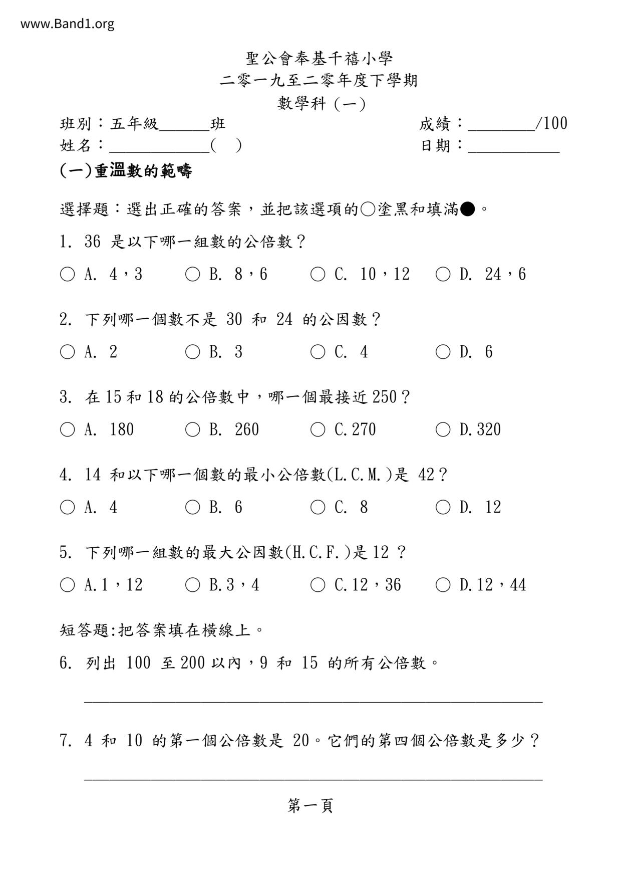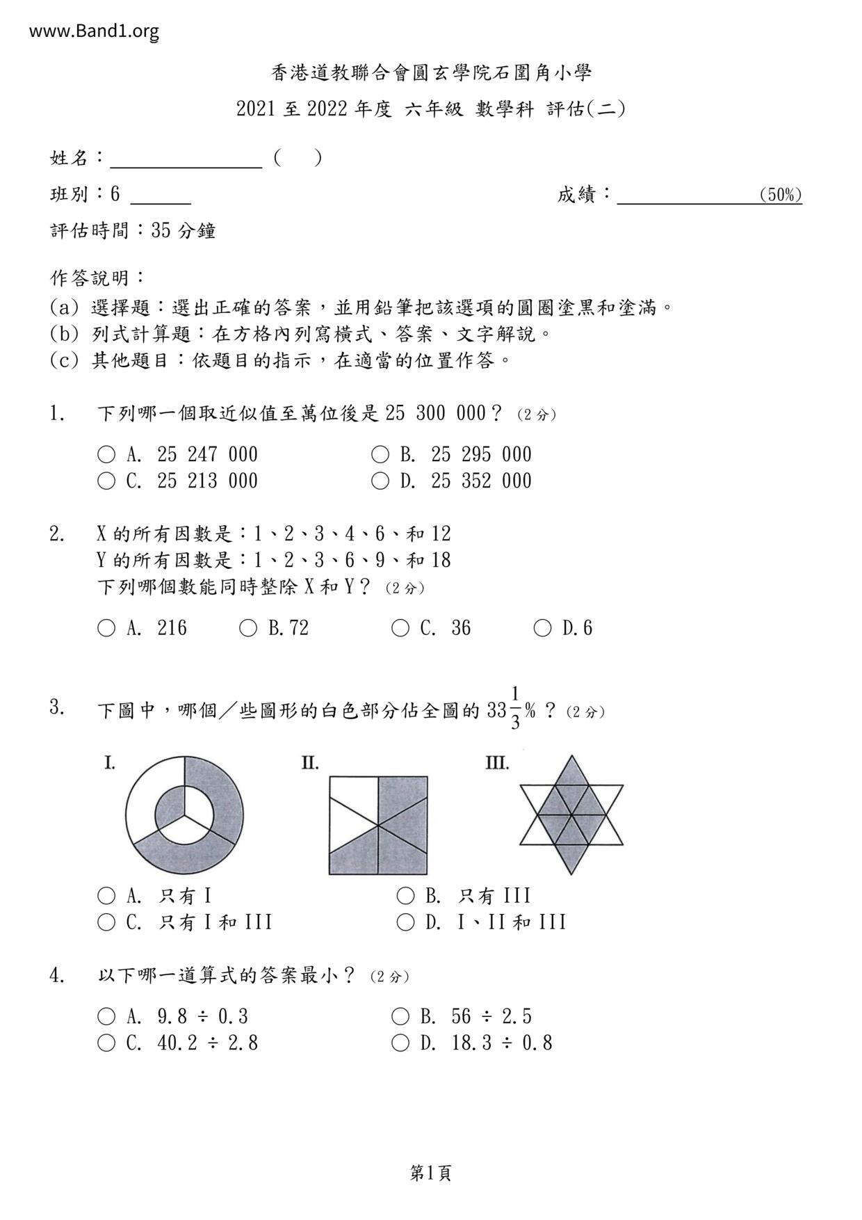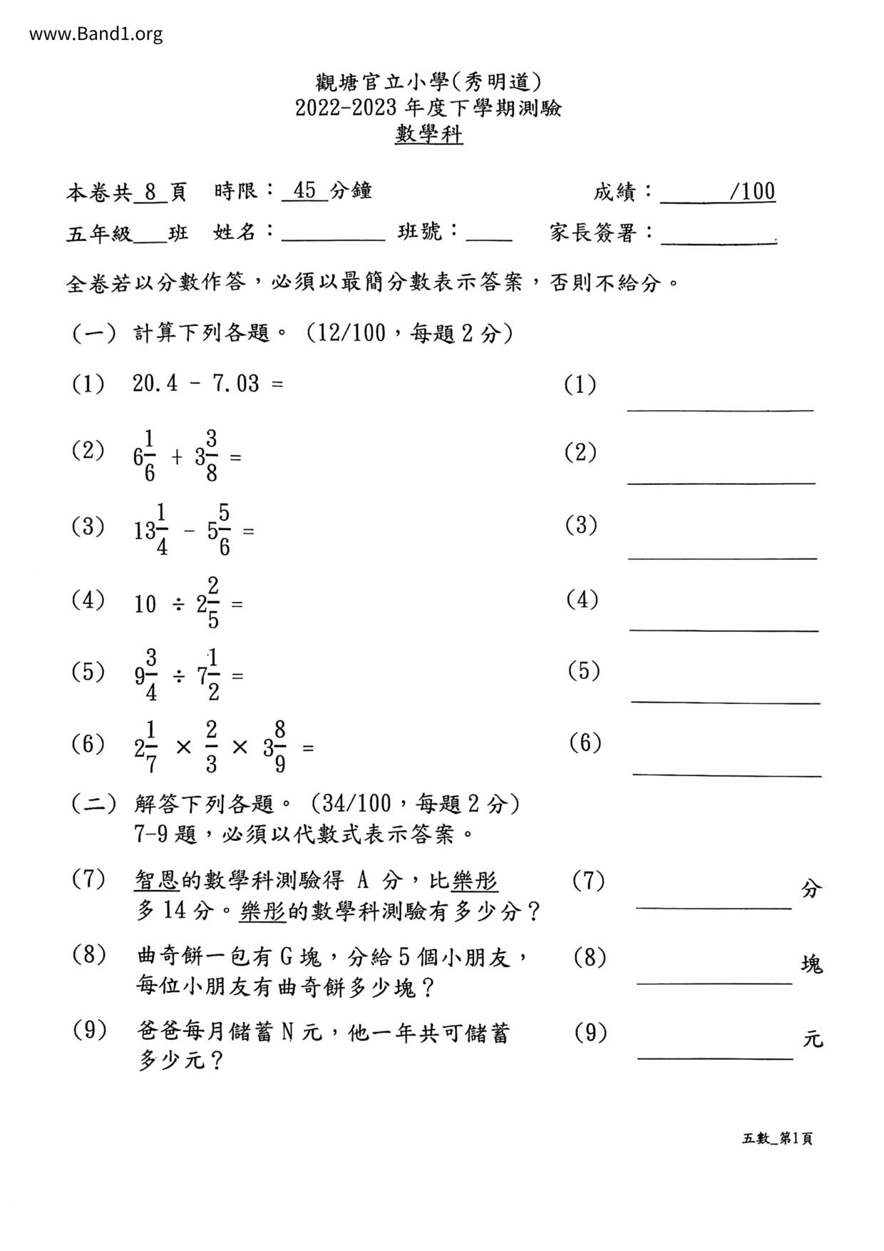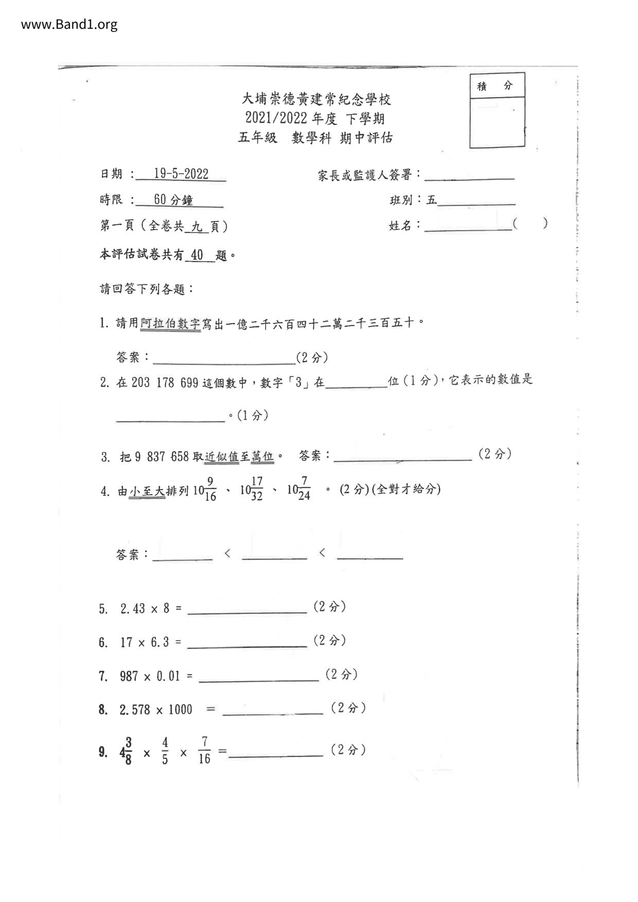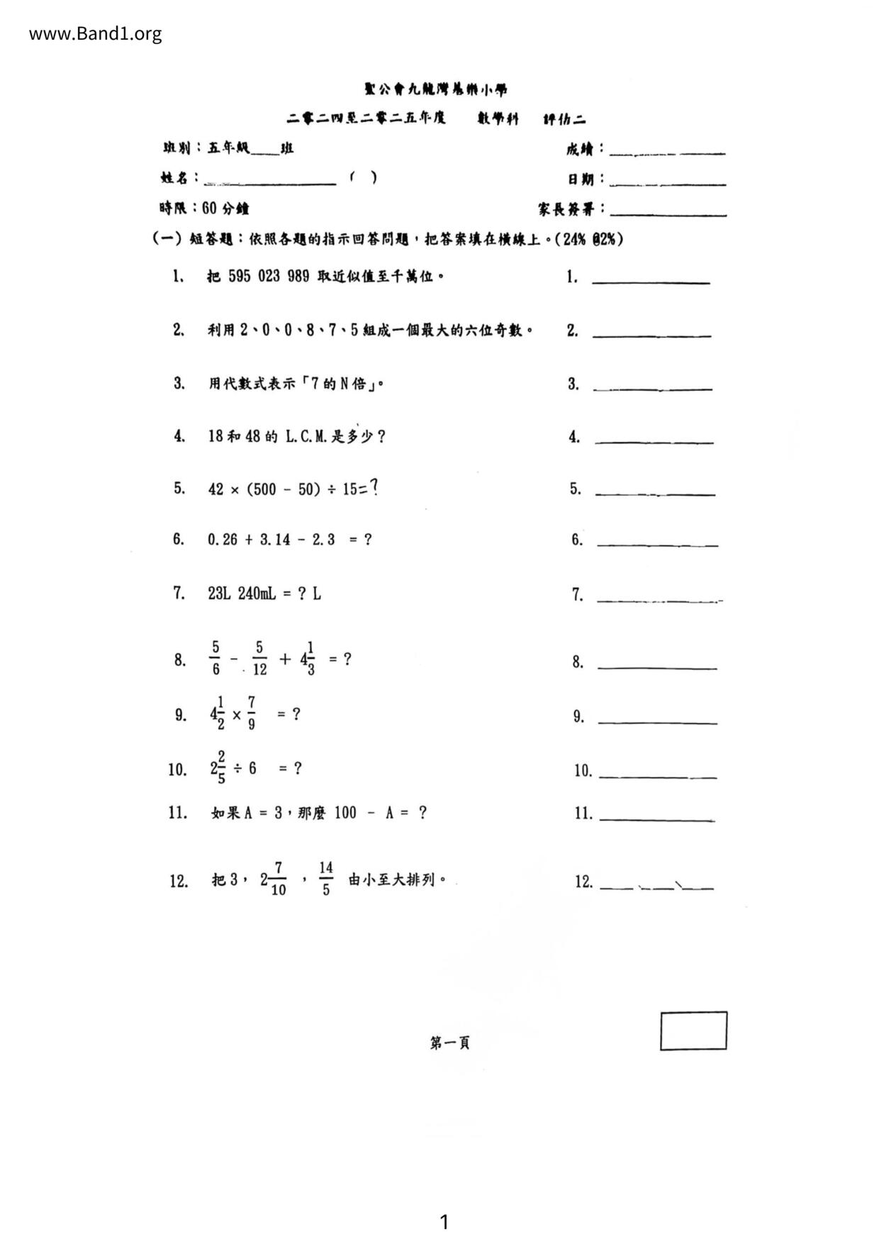 Deprecated: substr(): Passing null to parameter #1 ($string) of type string is deprecated in /home/band1.net/public_html/index.php on line 689 ★ 中小學數學試卷pdf Maths Past Paper - 香港中小學試卷pdf試題下載 ★