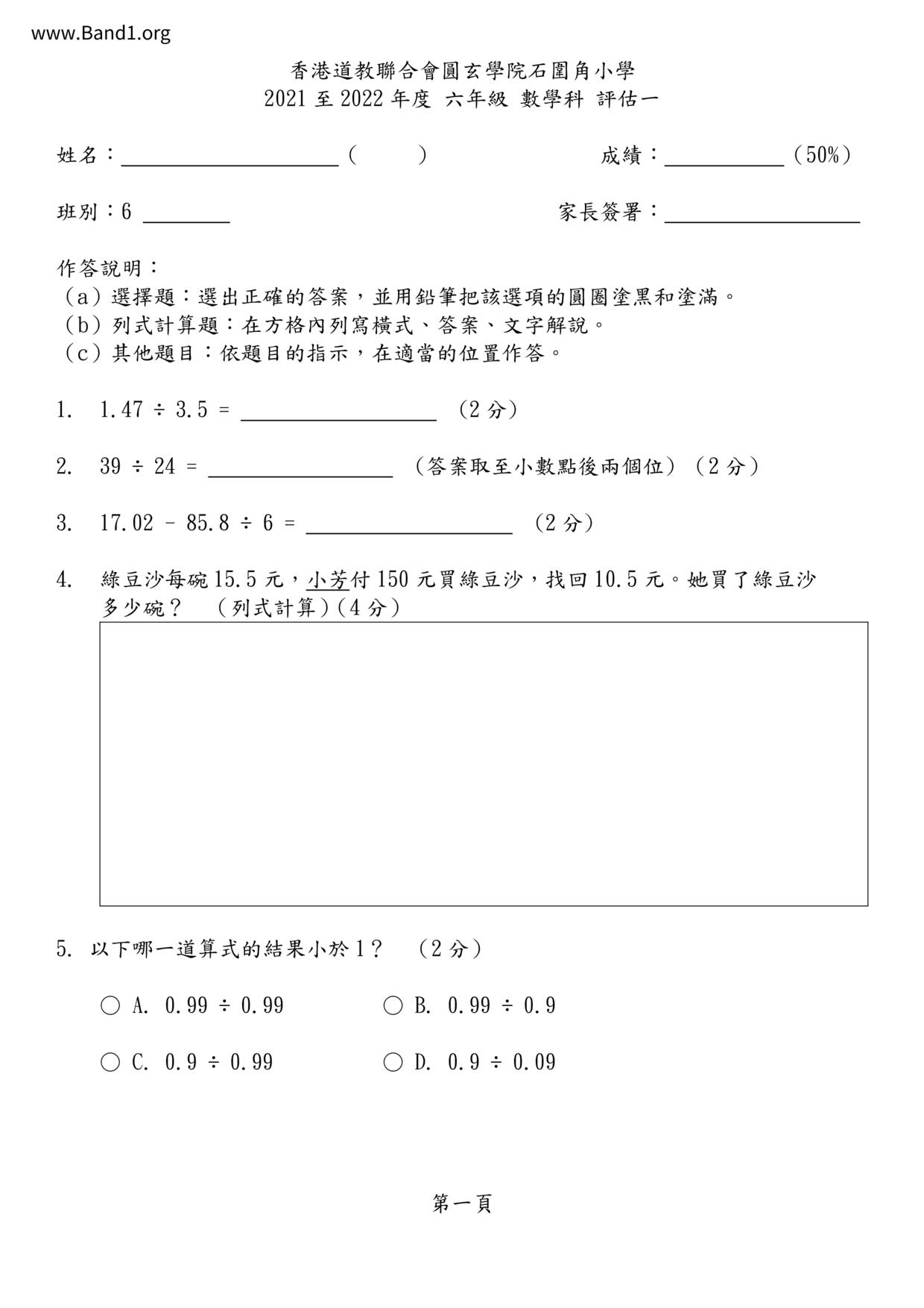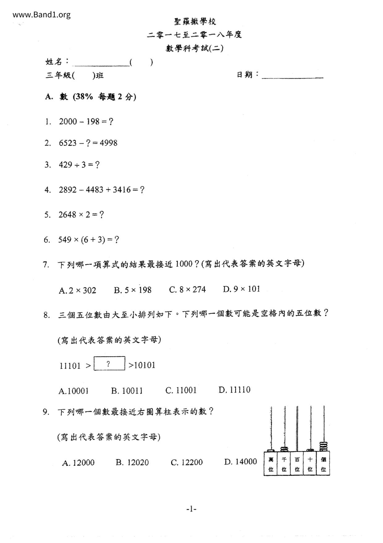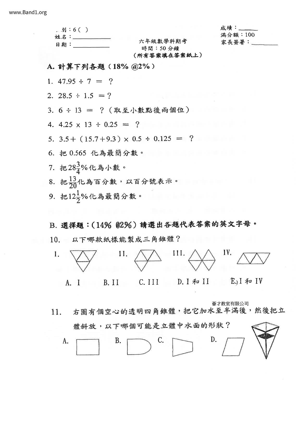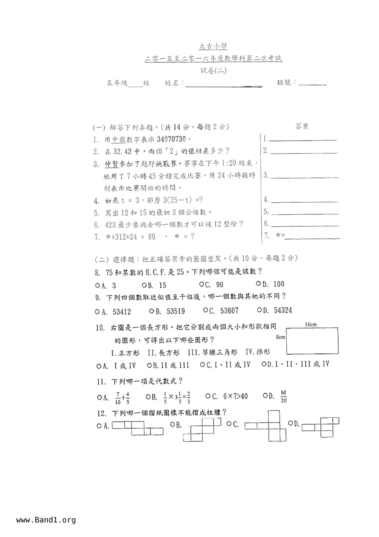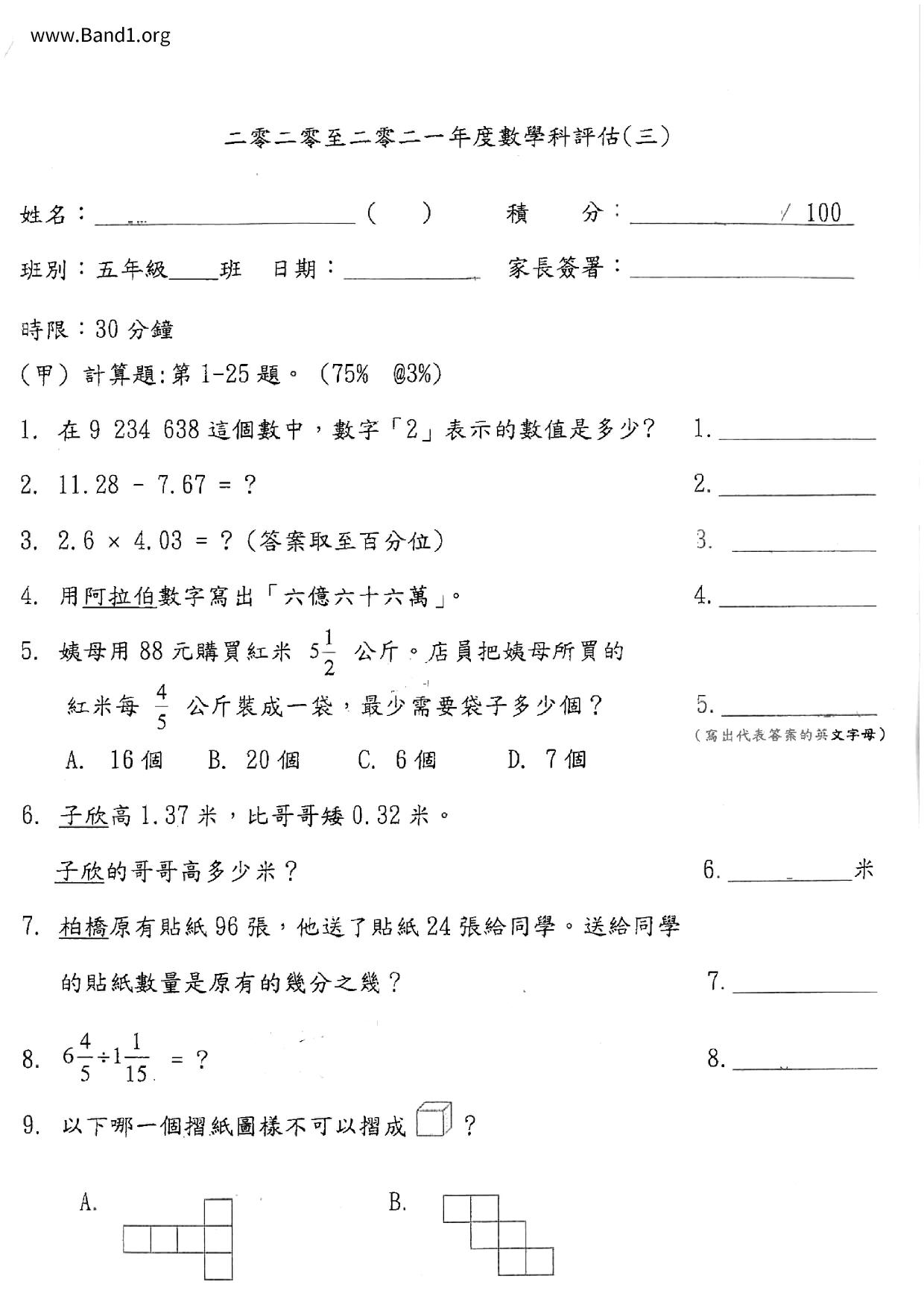 Deprecated: substr(): Passing null to parameter #1 ($string) of type string is deprecated in /home/band1.net/public_html/index.php on line 689 ★ 中小學數學試卷pdf Maths Past Paper - 香港中小學試卷pdf試題下載 ★