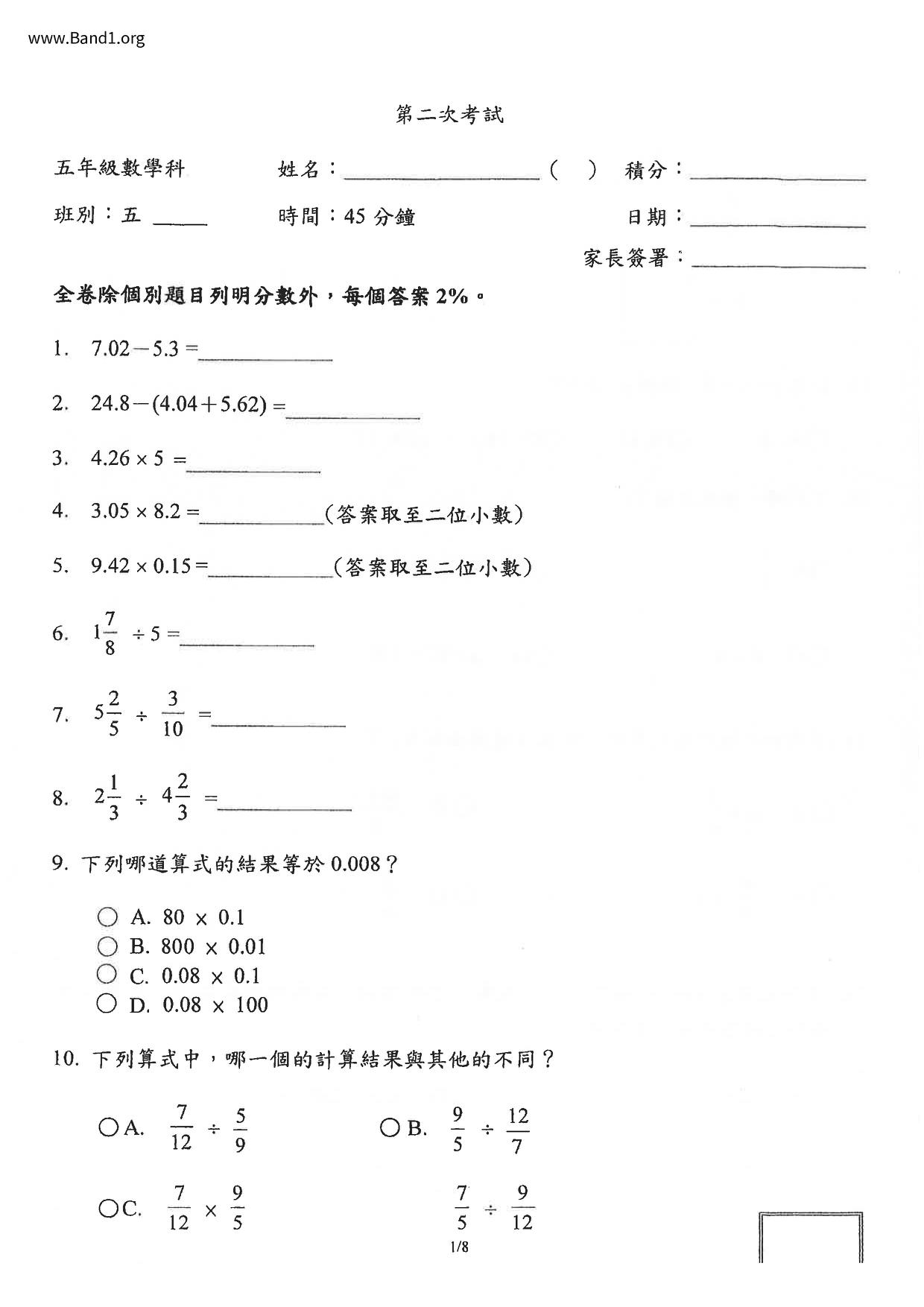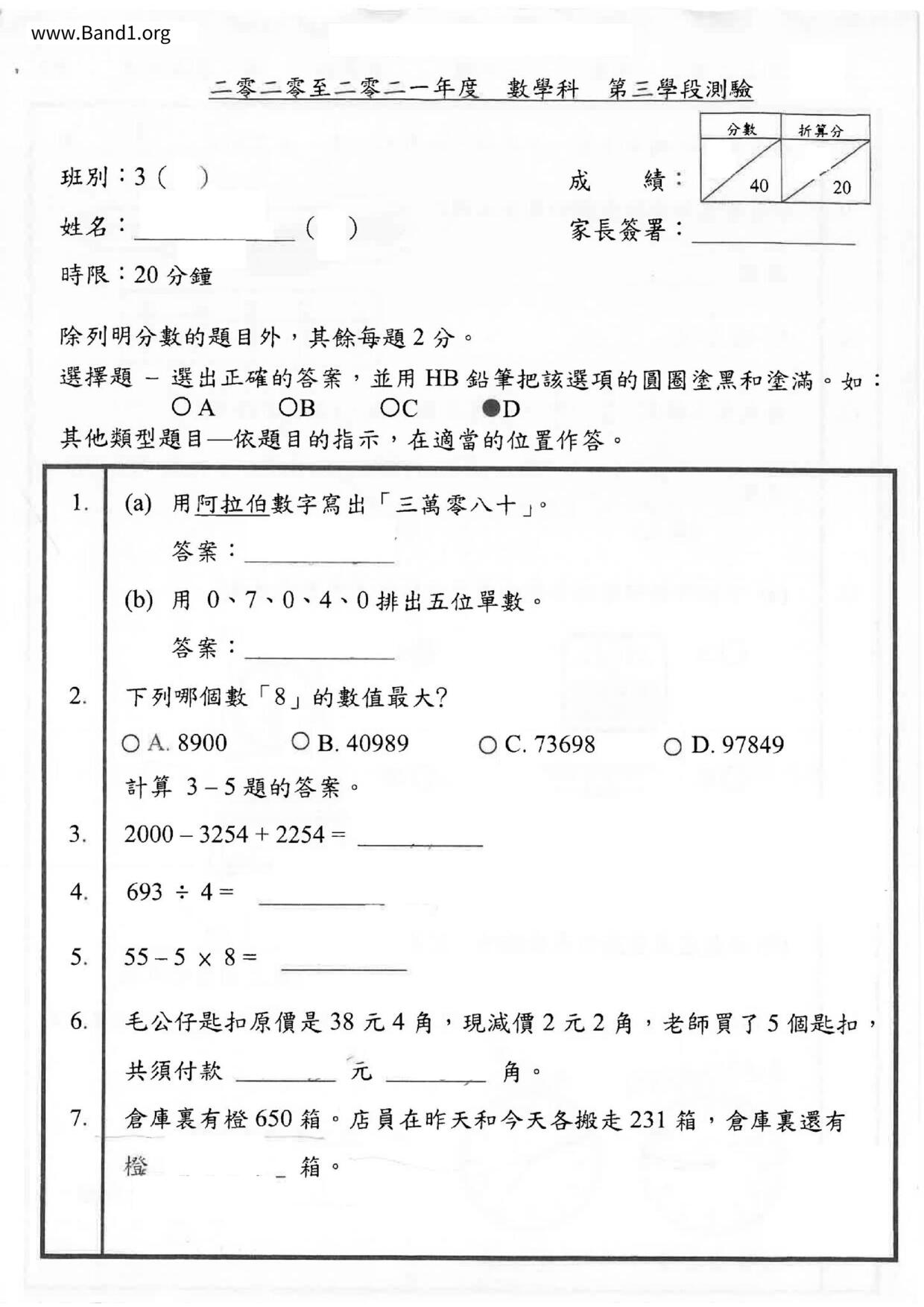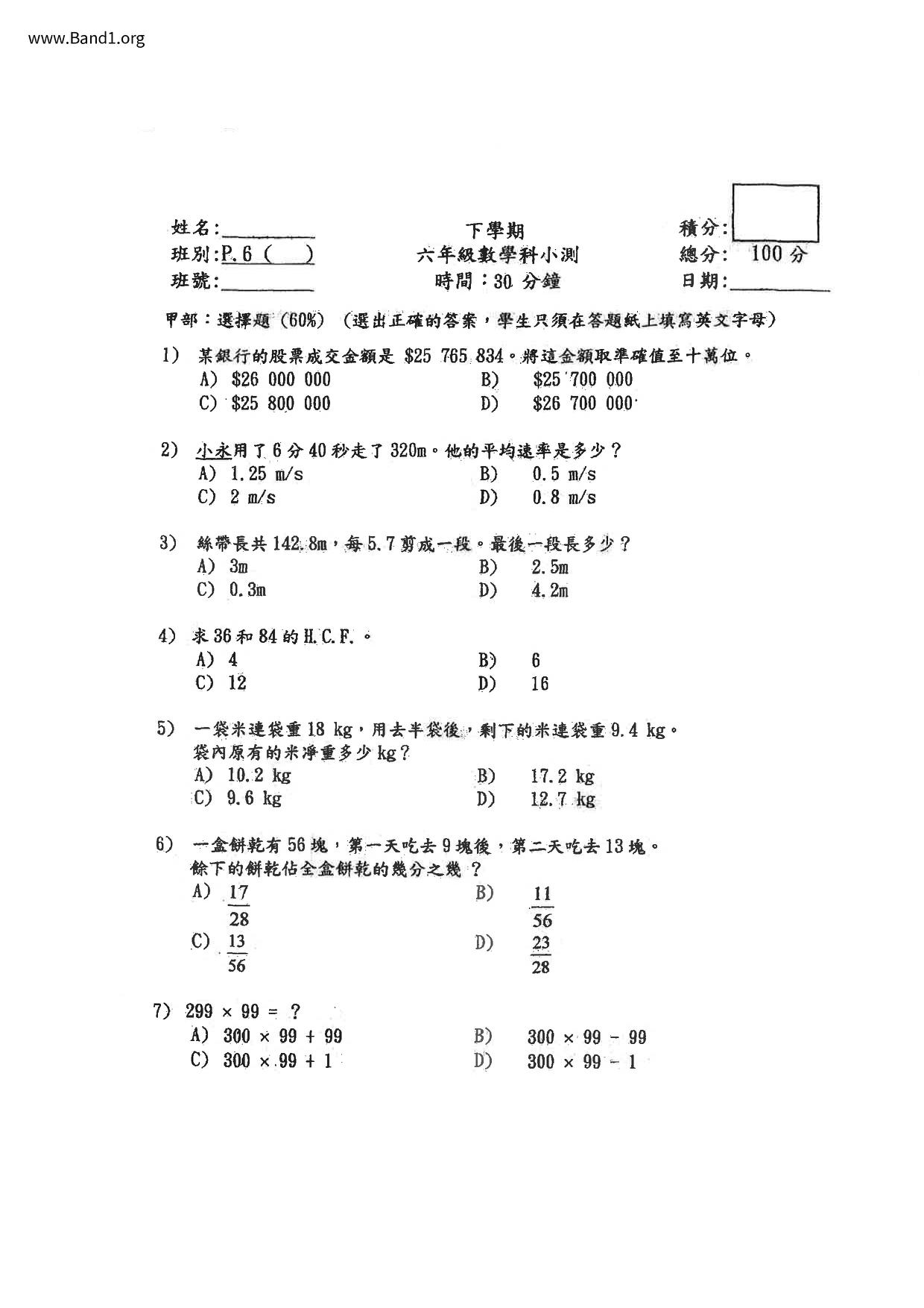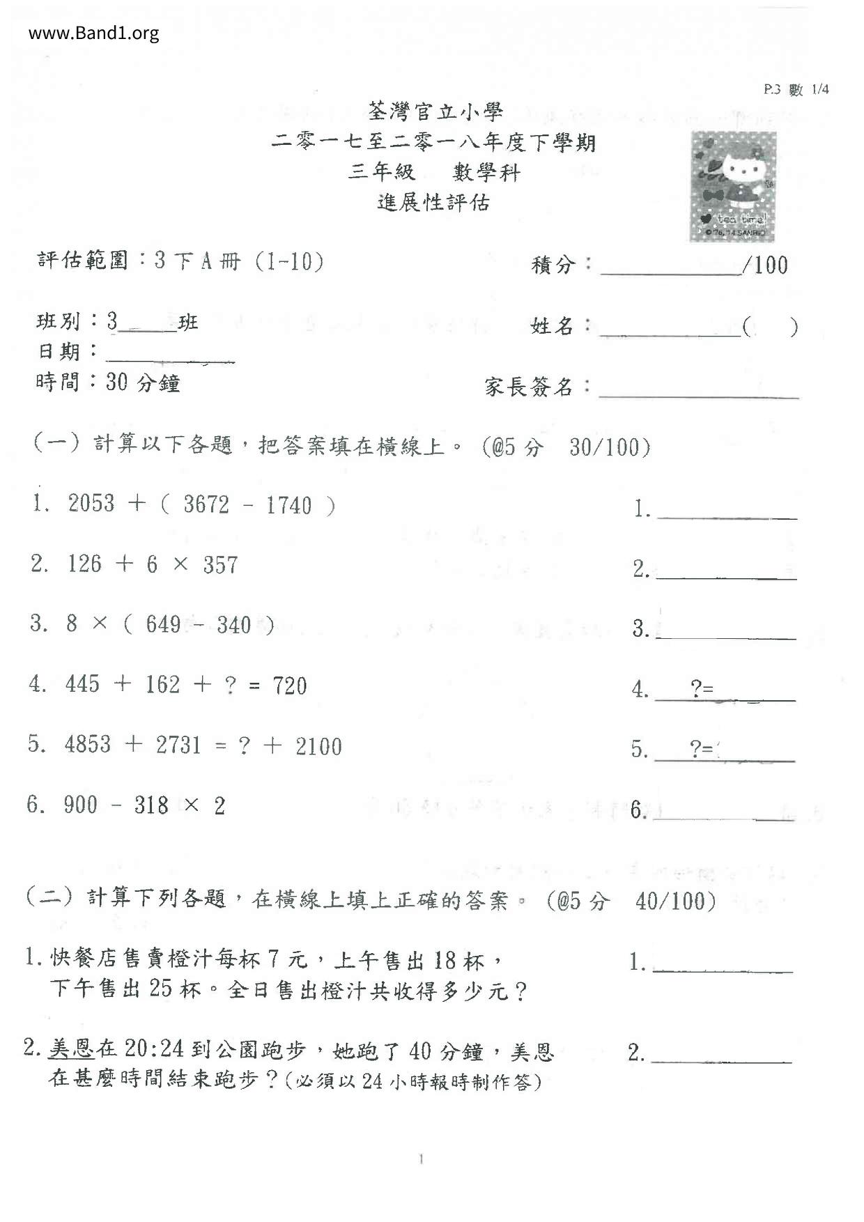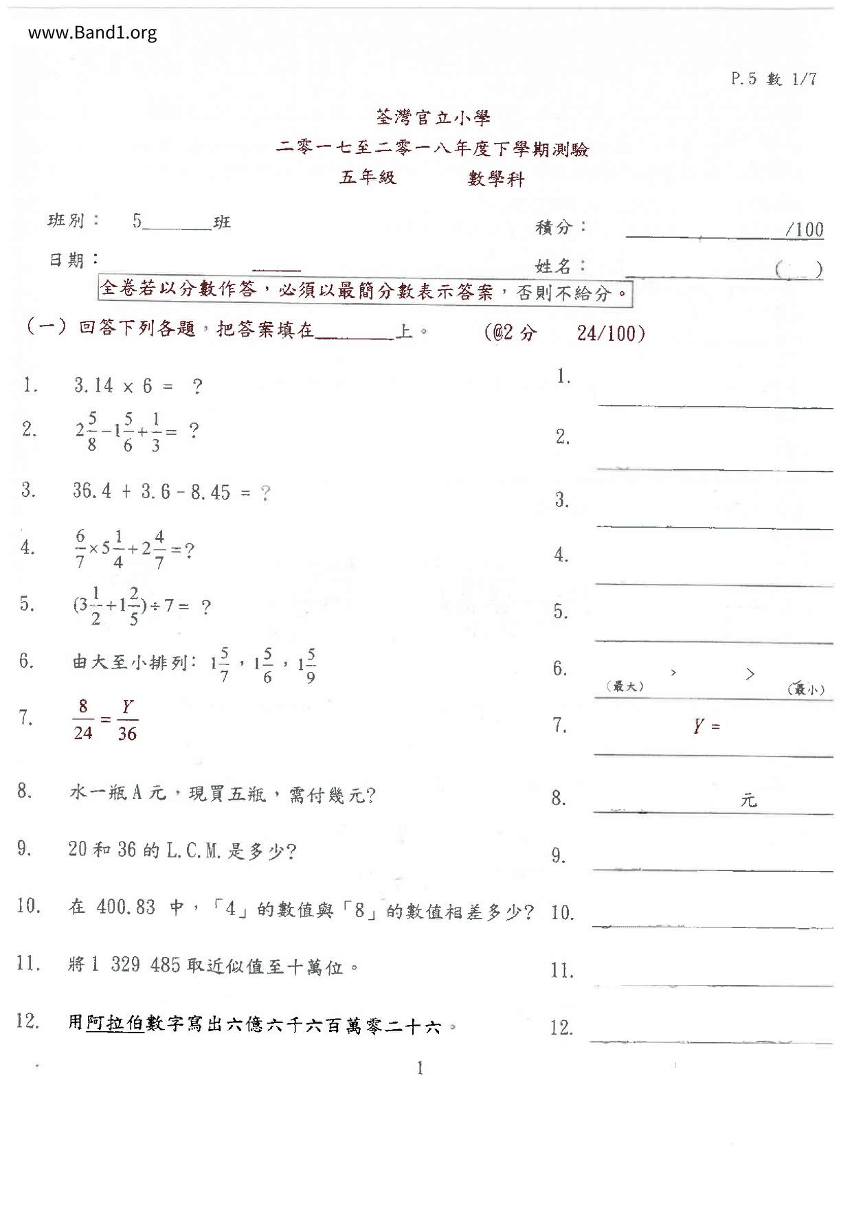 Deprecated: substr(): Passing null to parameter #1 ($string) of type string is deprecated in /home/band1.net/public_html/index.php on line 689 ★ 中小學數學試卷pdf Maths Past Paper - 香港中小學試卷pdf試題下載 ★