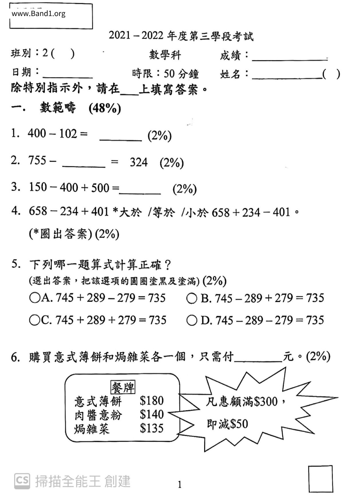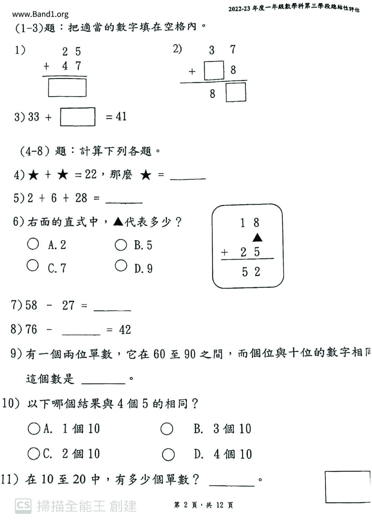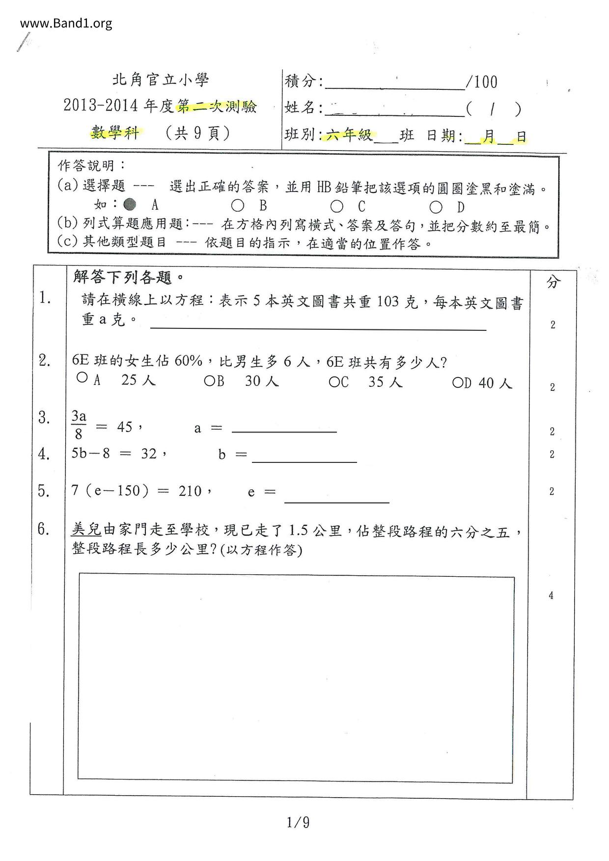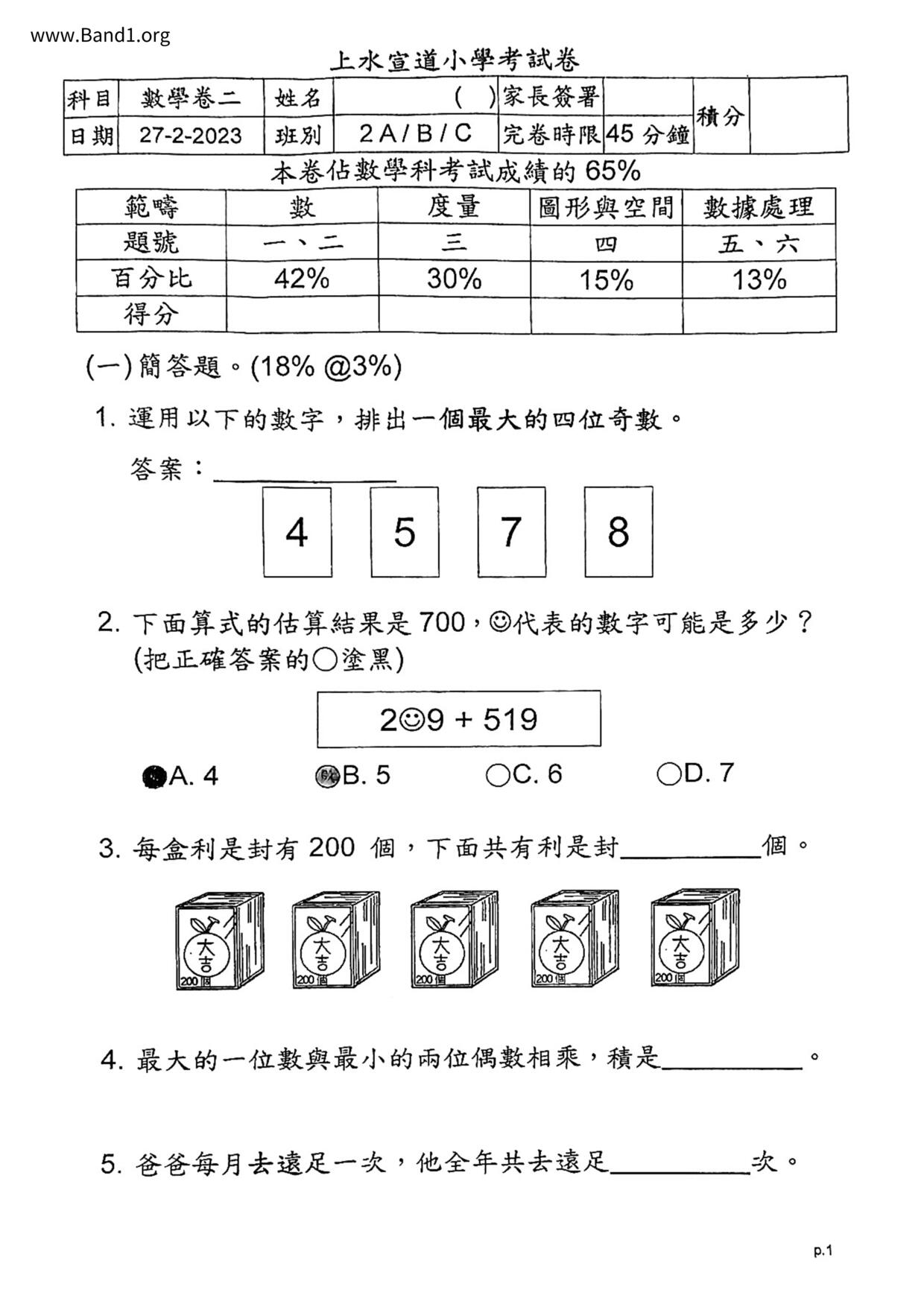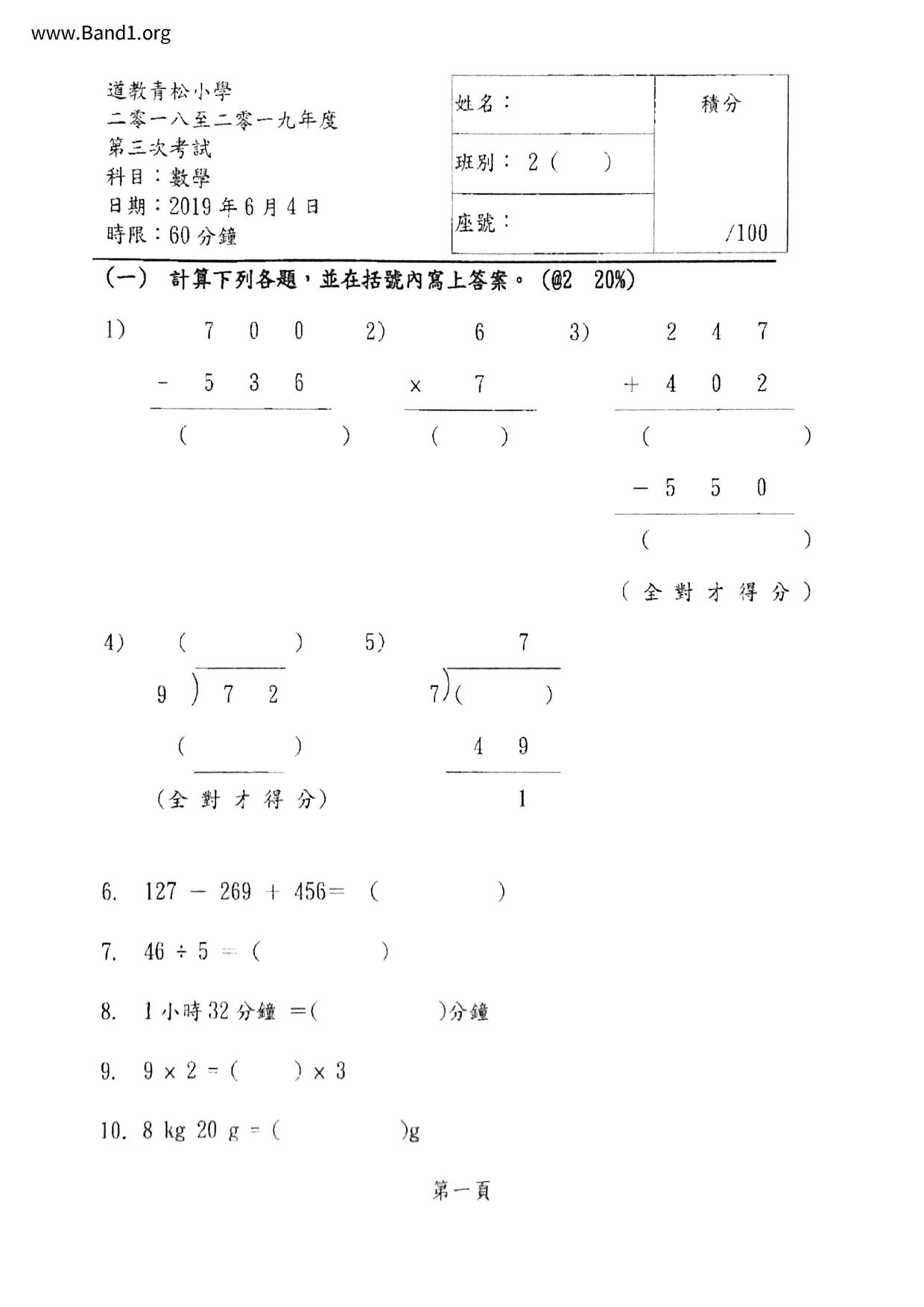 Deprecated: substr(): Passing null to parameter #1 ($string) of type string is deprecated in /home/band1.net/public_html/index.php on line 689 ★ 中小學數學試卷pdf Maths Past Paper - 香港中小學試卷pdf試題下載 ★