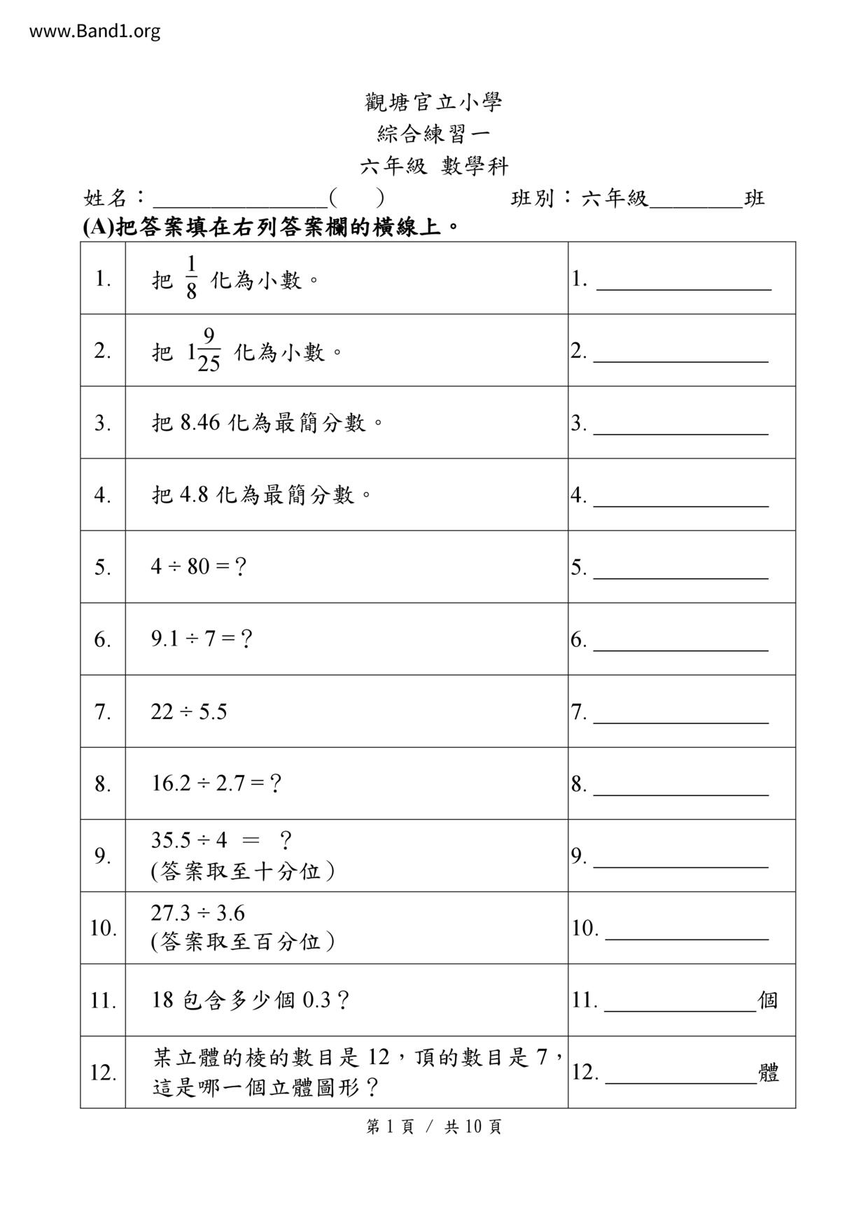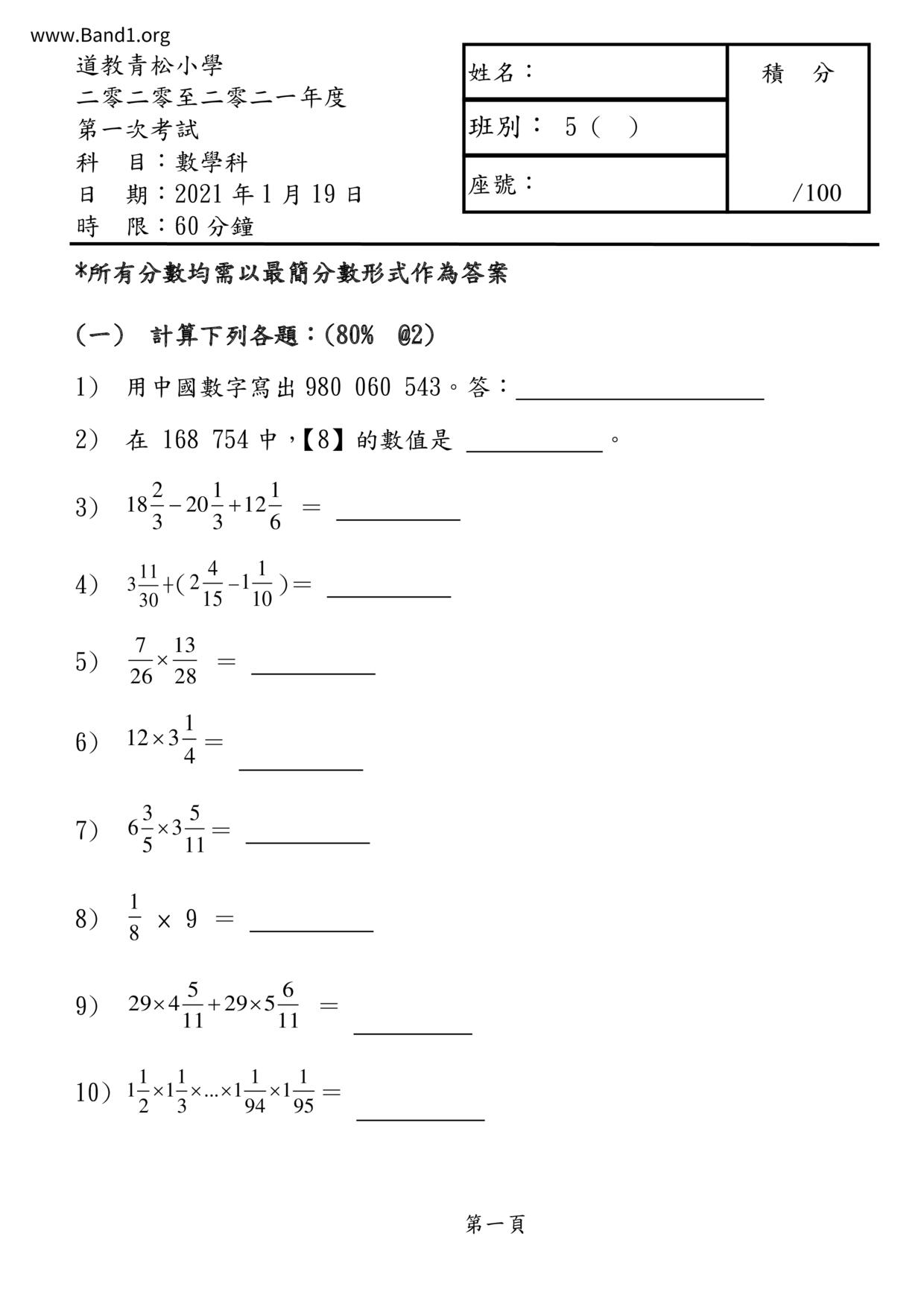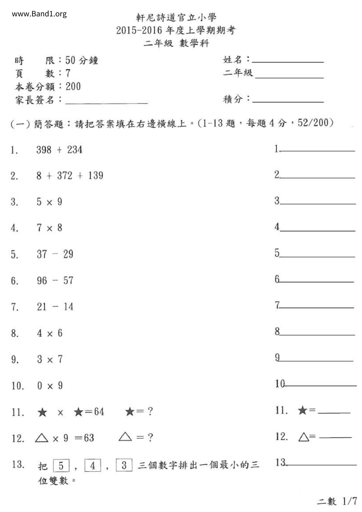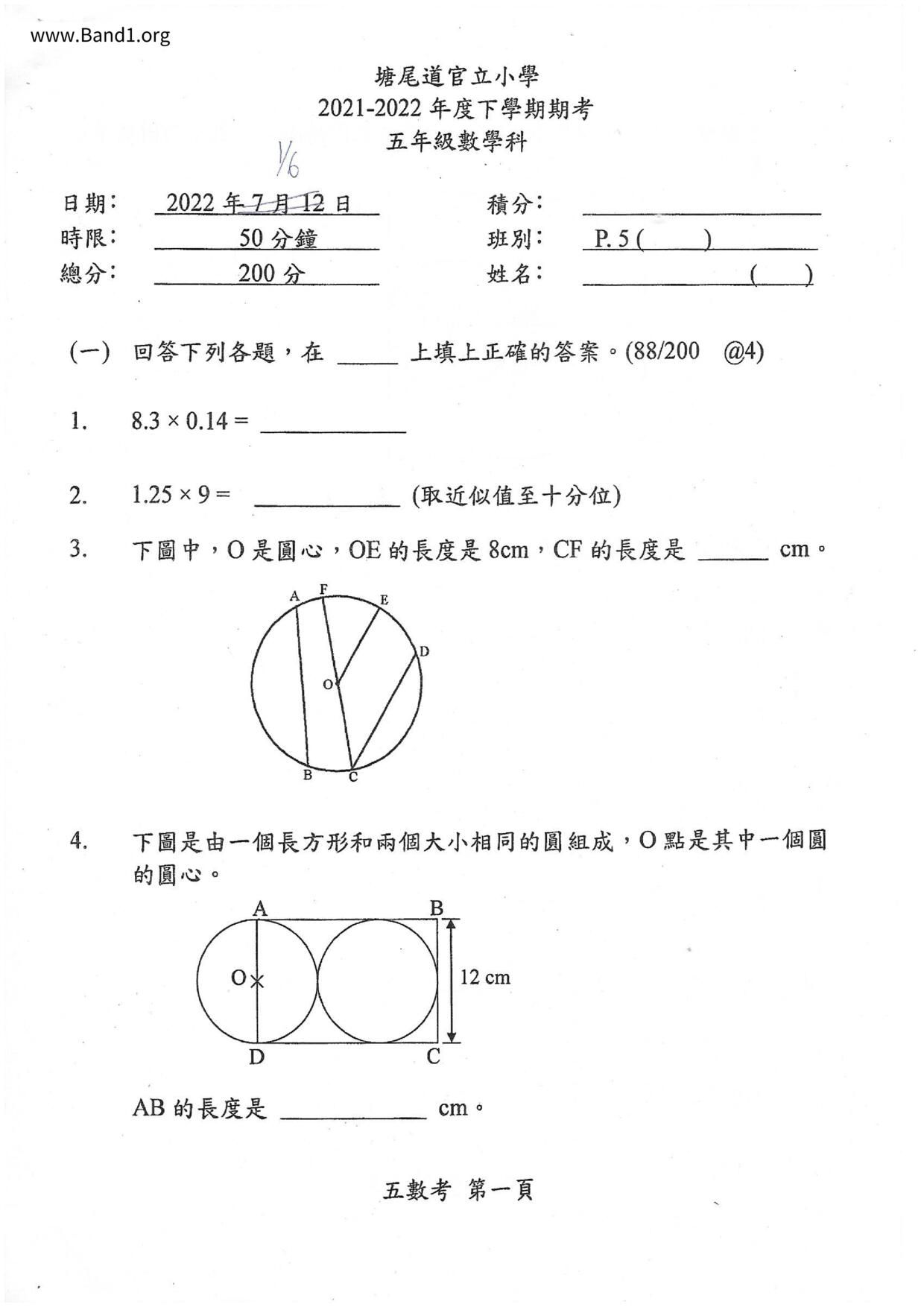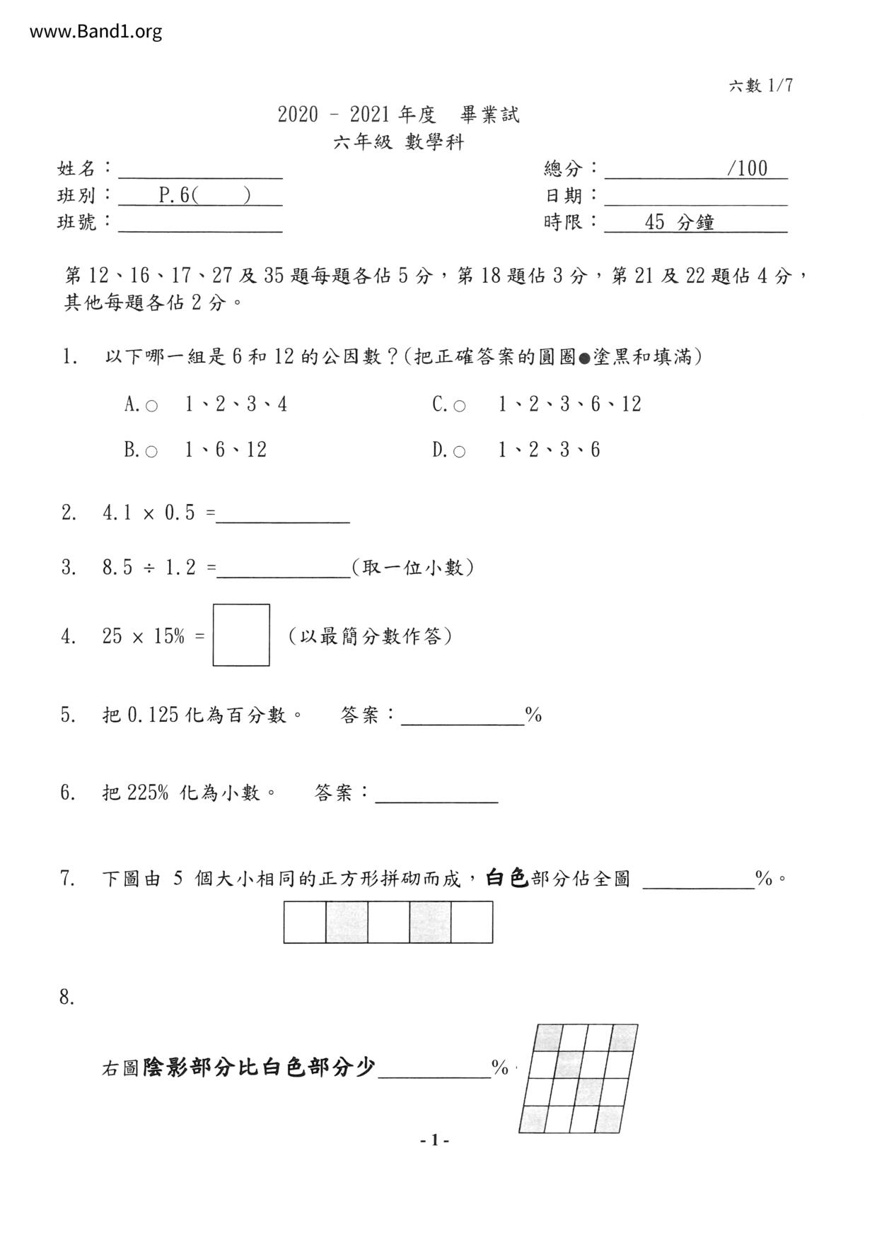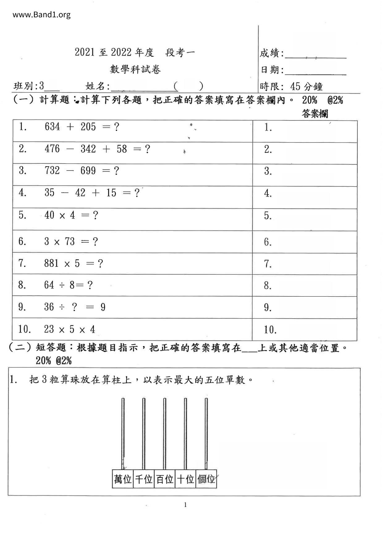Deprecated: substr(): Passing null to parameter #1 ($string) of type string is deprecated in /home/band1.net/public_html/index.php on line 689 ★ 中小學數學試卷pdf Maths Past Paper - 香港中小學試卷pdf試題下載 ★