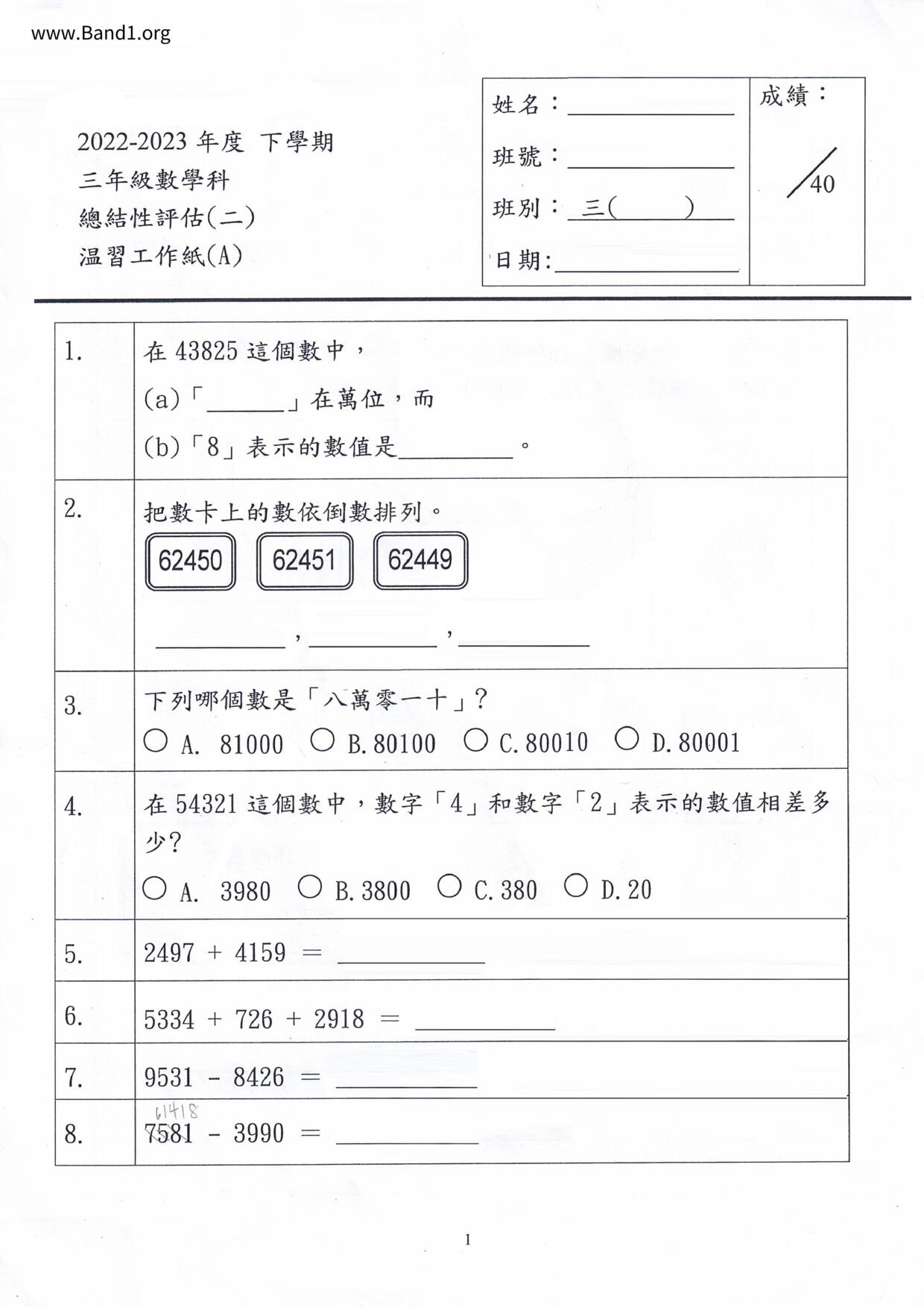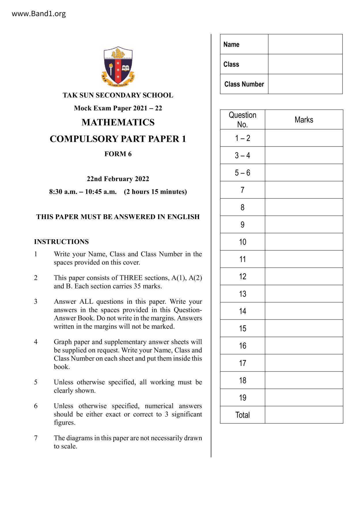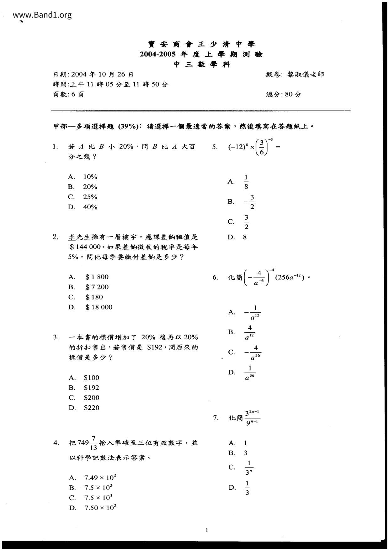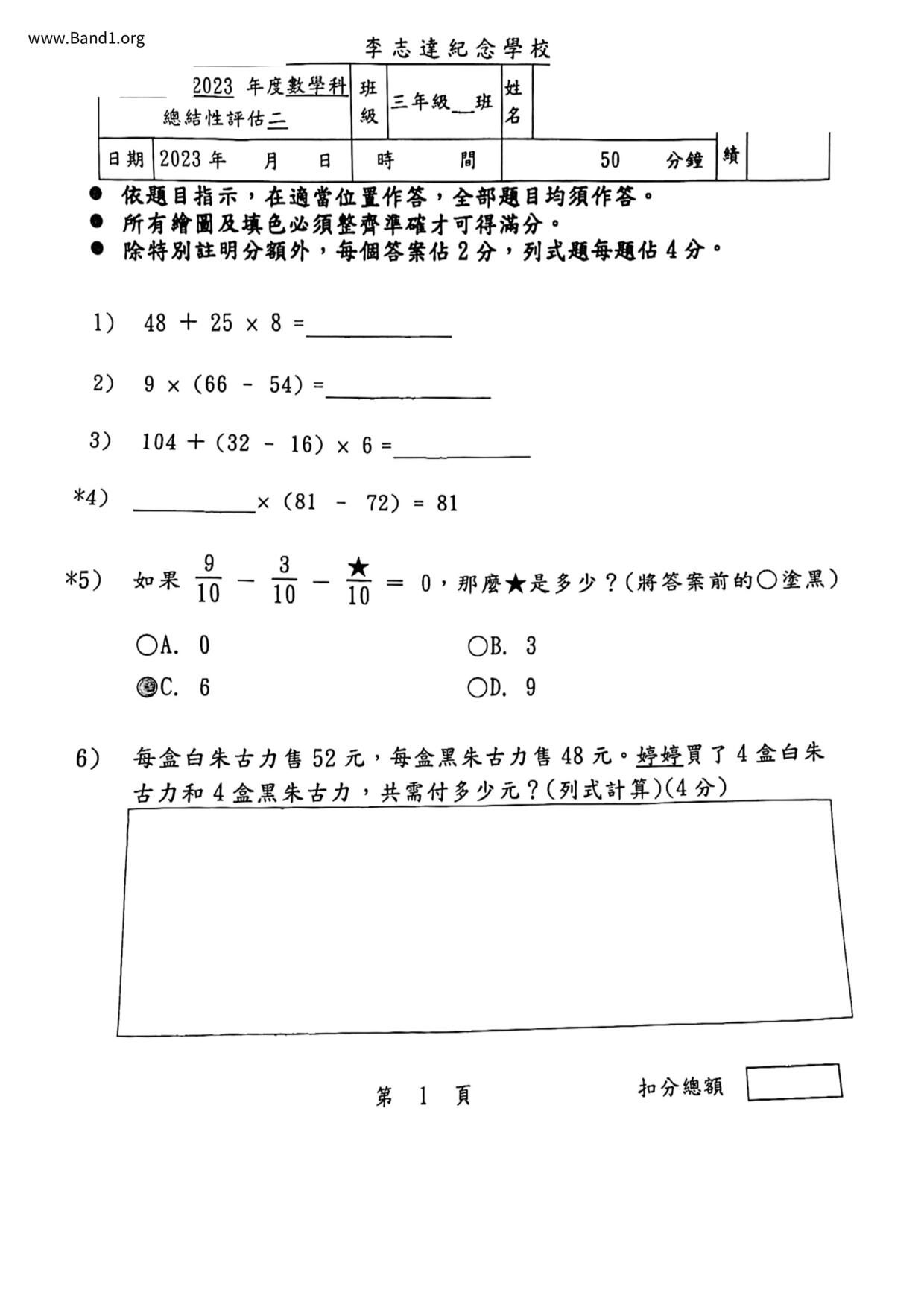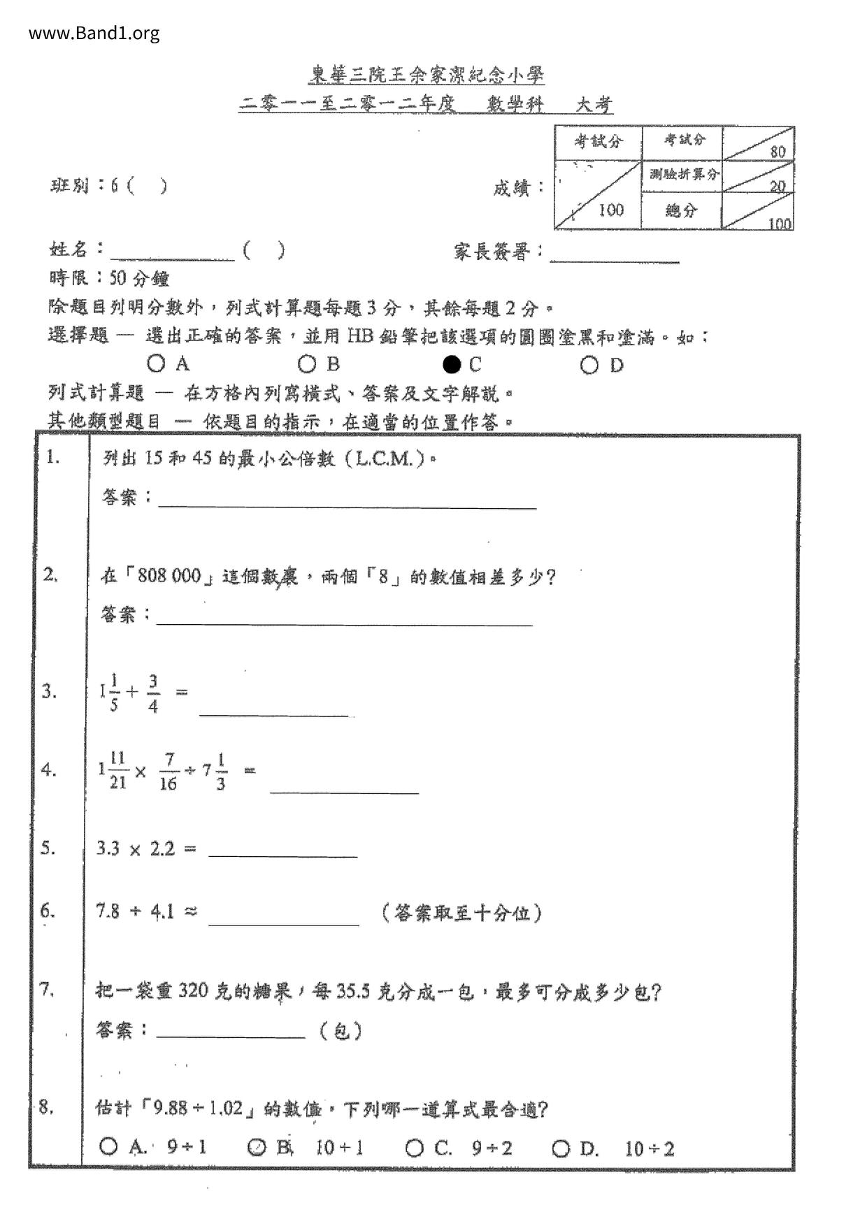 Deprecated: substr(): Passing null to parameter #1 ($string) of type string is deprecated in /home/band1.net/public_html/index.php on line 689 ★ 中小學數學試卷pdf Maths Past Paper - 香港中小學試卷pdf試題下載 ★