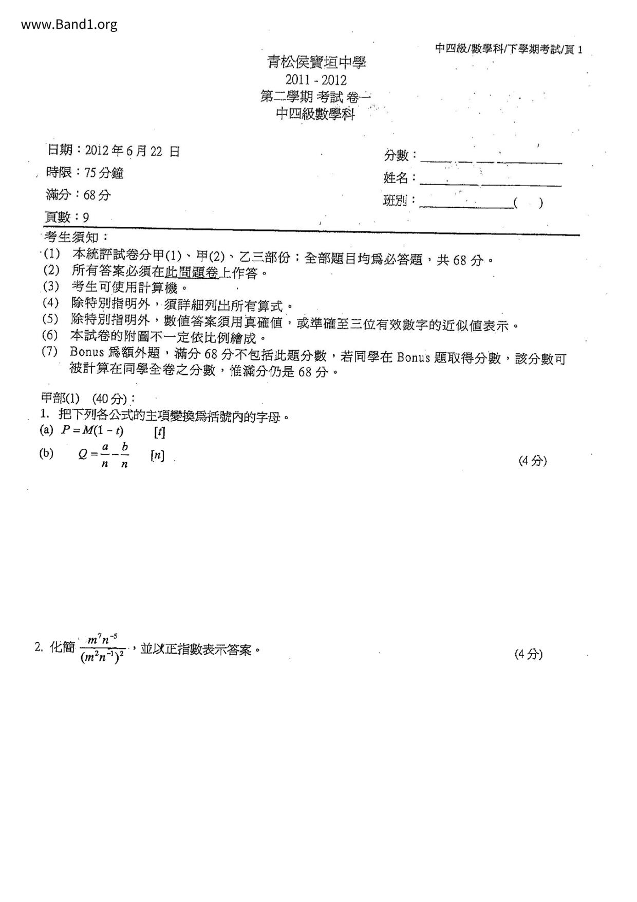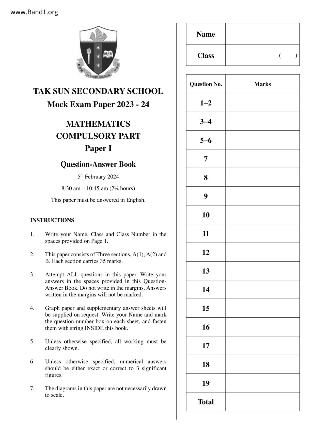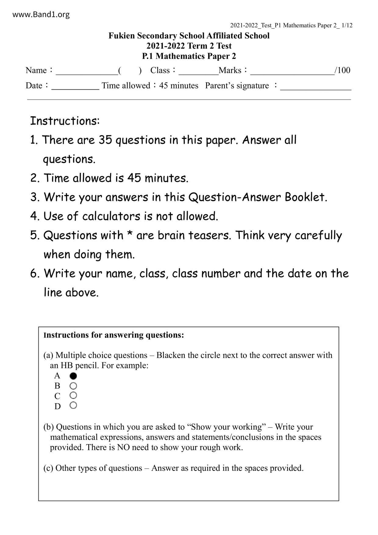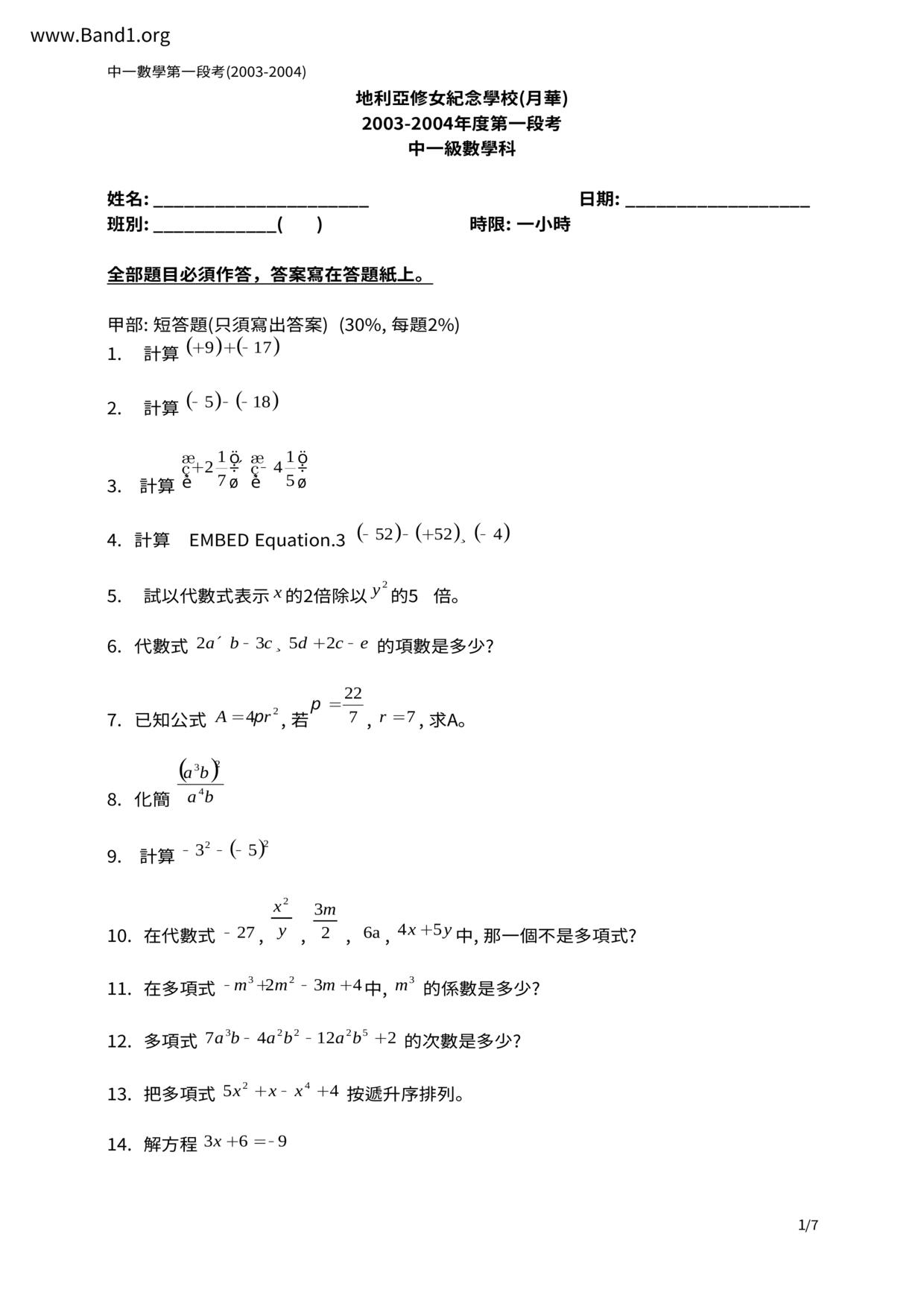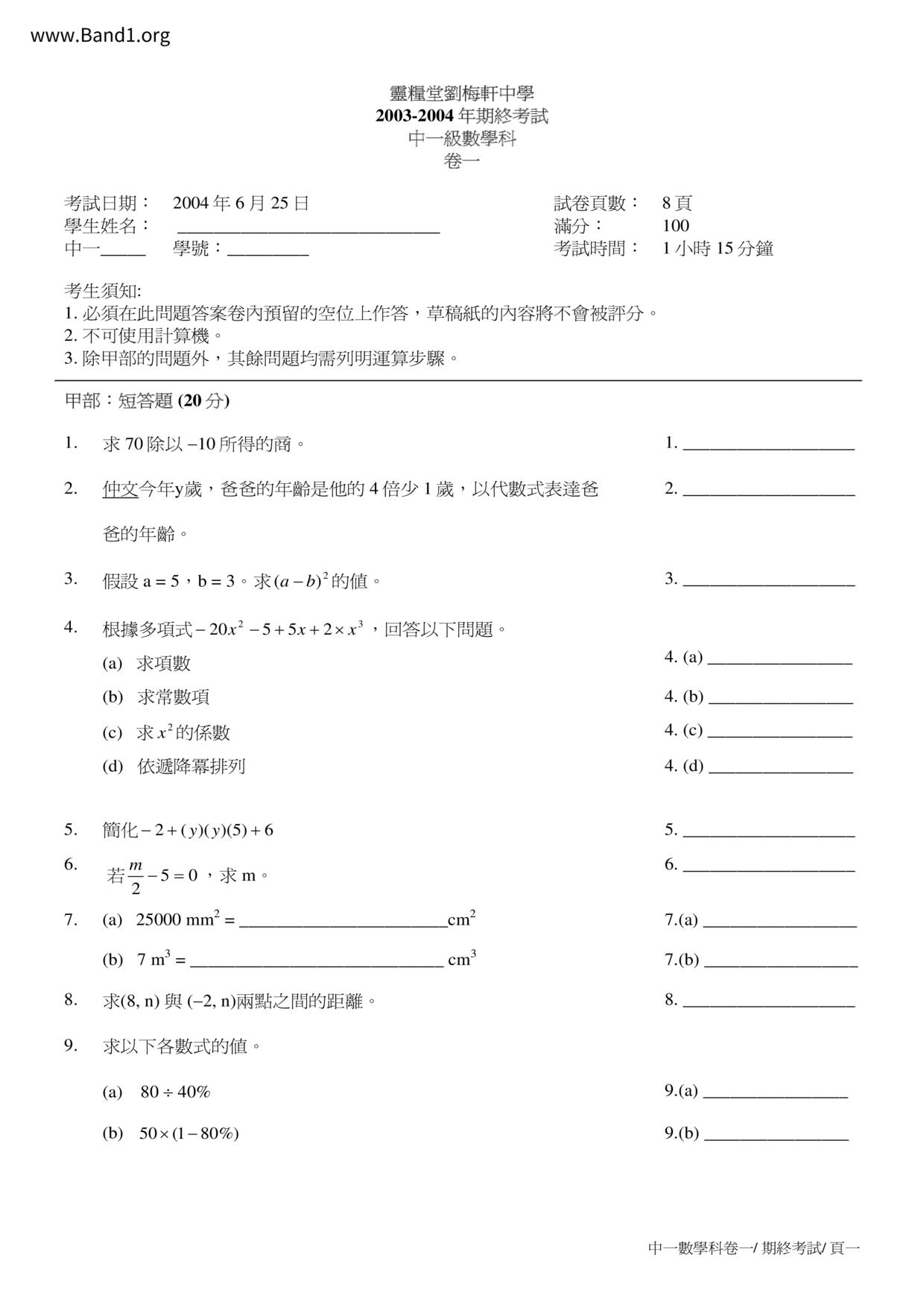 Deprecated: substr(): Passing null to parameter #1 ($string) of type string is deprecated in /home/band1.net/public_html/index.php on line 689 ★ 中小學數學試卷pdf Maths Past Paper - 香港中小學試卷pdf試題下載 ★
