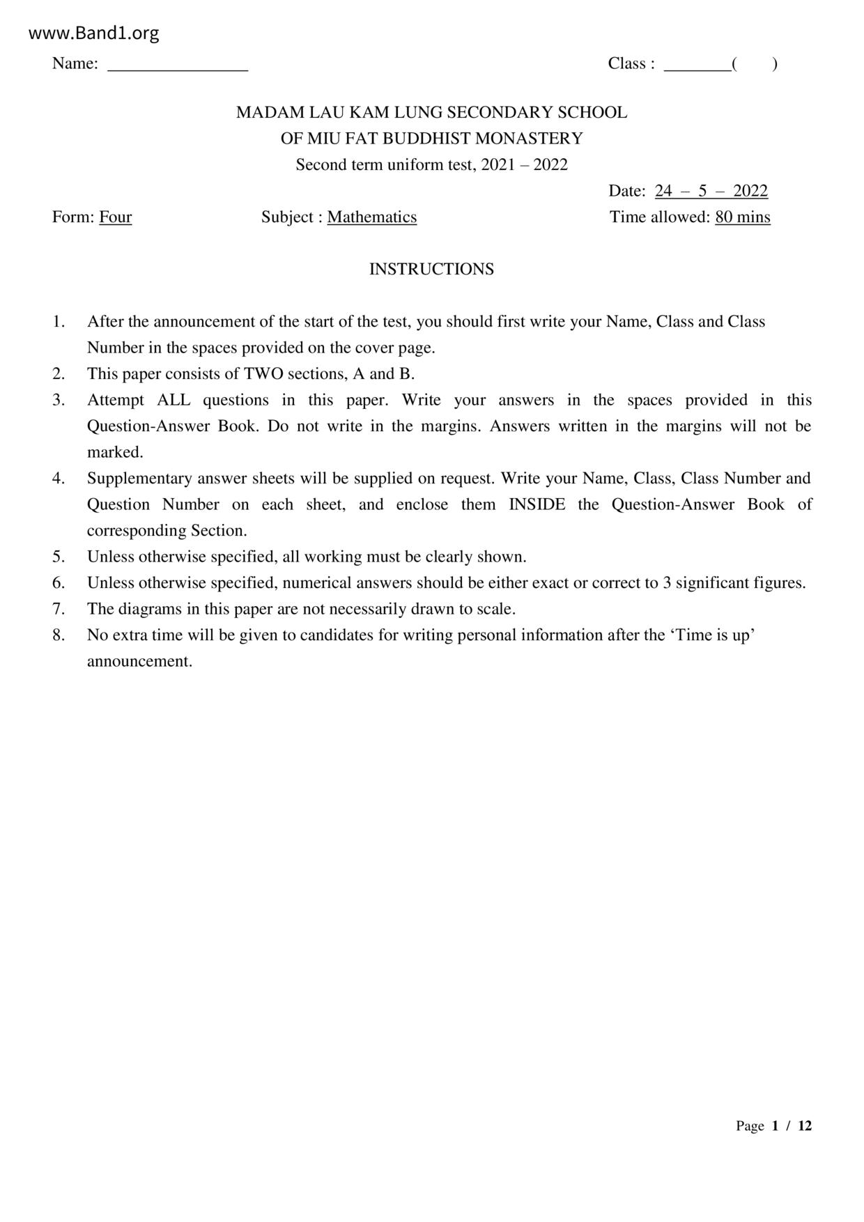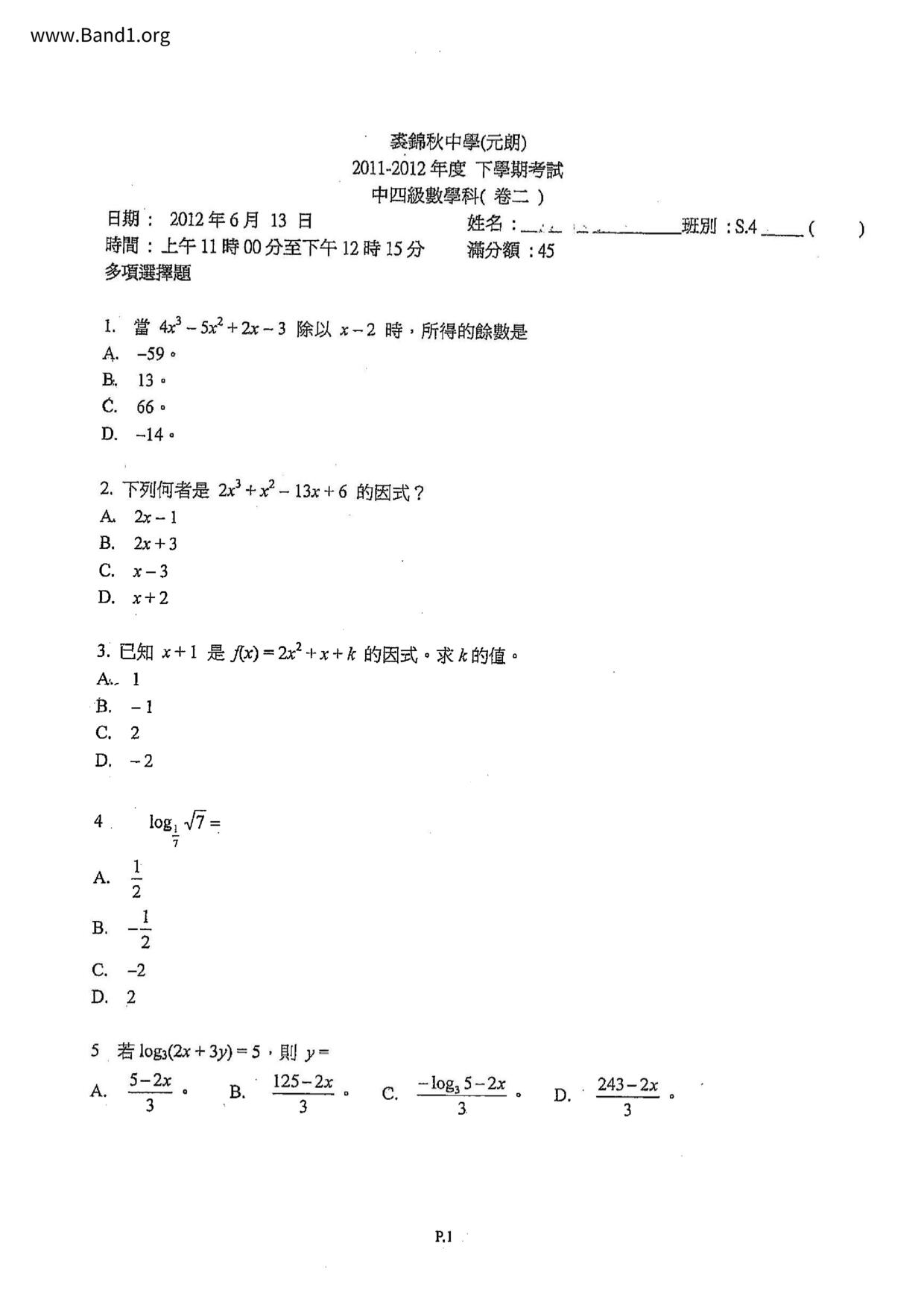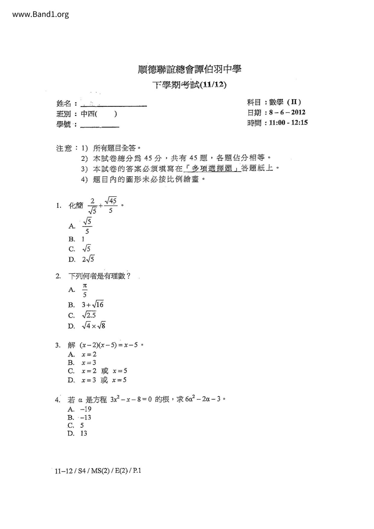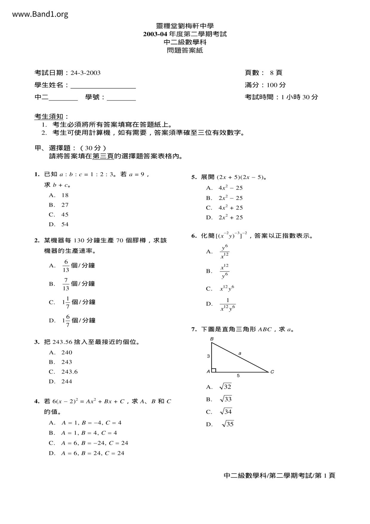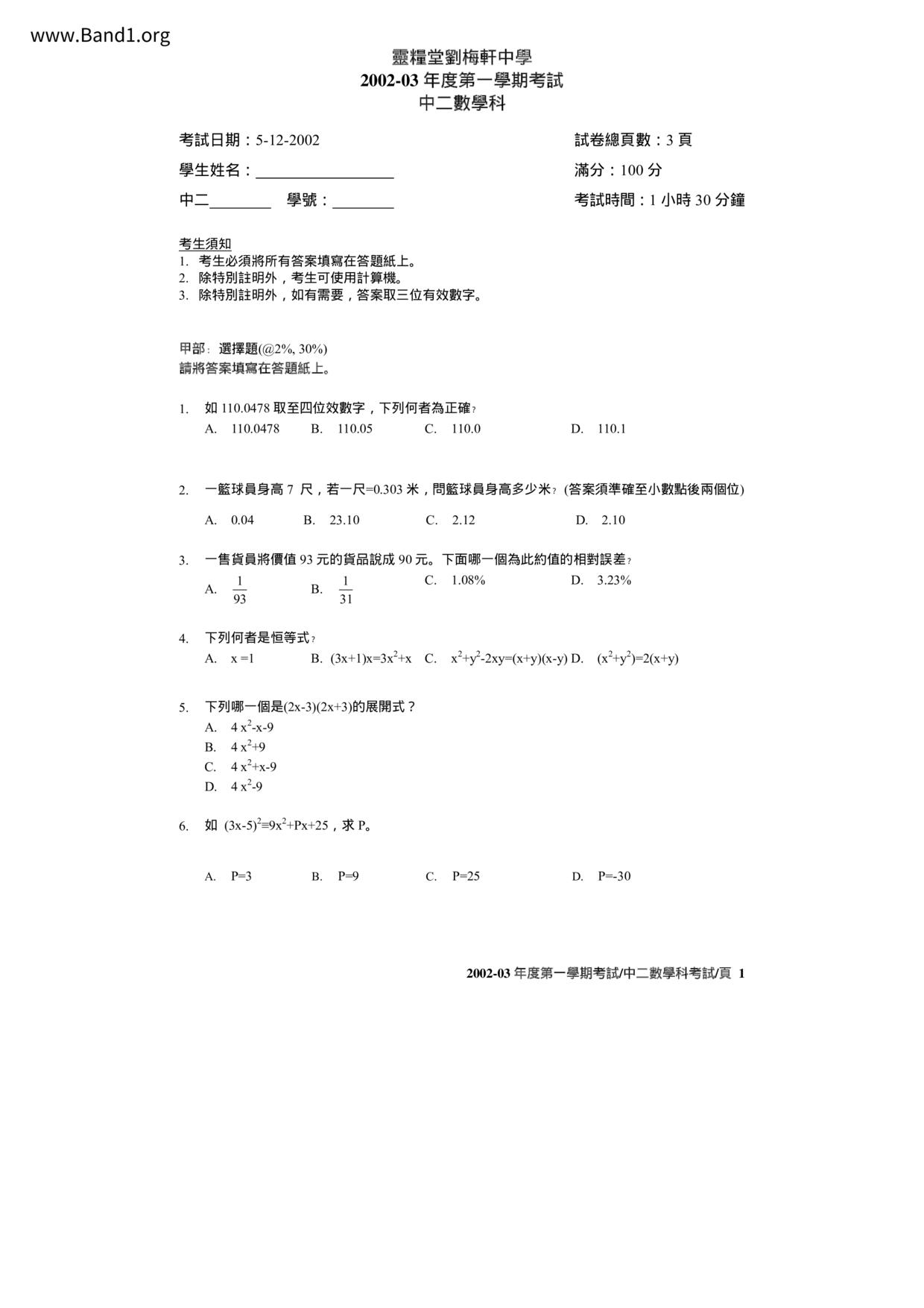 Deprecated: substr(): Passing null to parameter #1 ($string) of type string is deprecated in /home/band1.net/public_html/index.php on line 689 ★ 中小學數學試卷pdf Maths Past Paper - 香港中小學試卷pdf試題下載 ★
