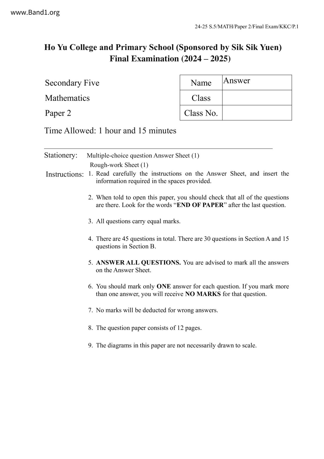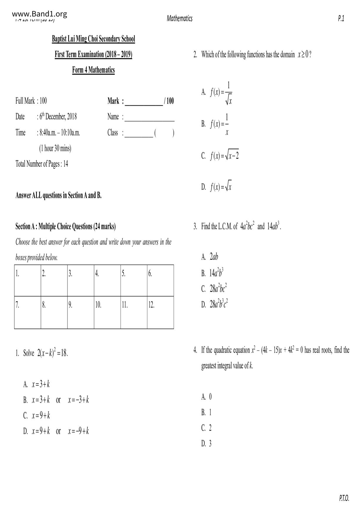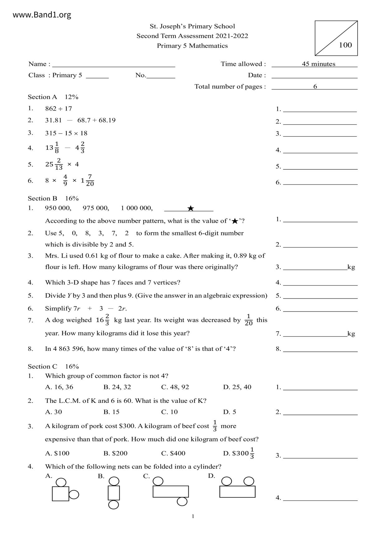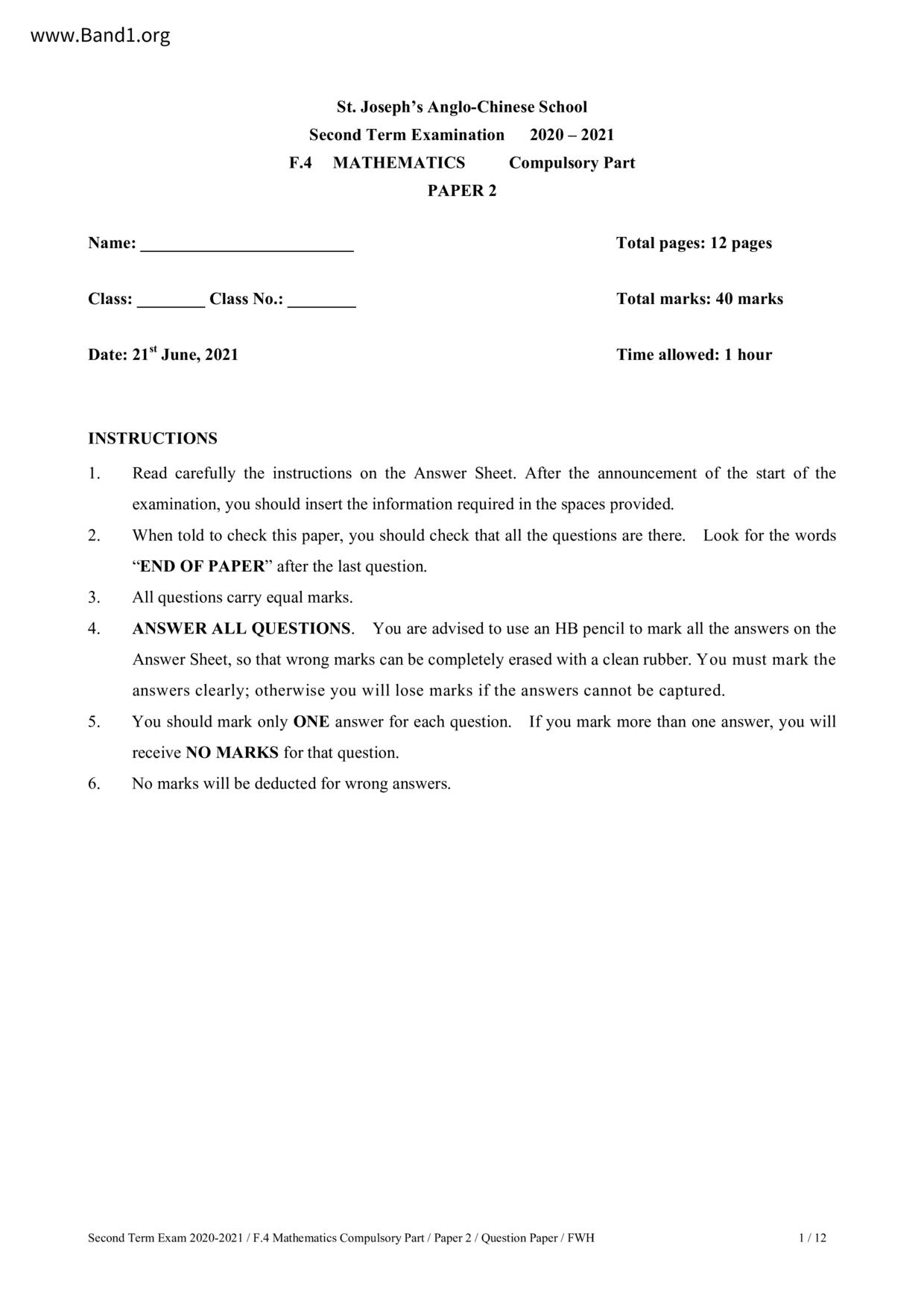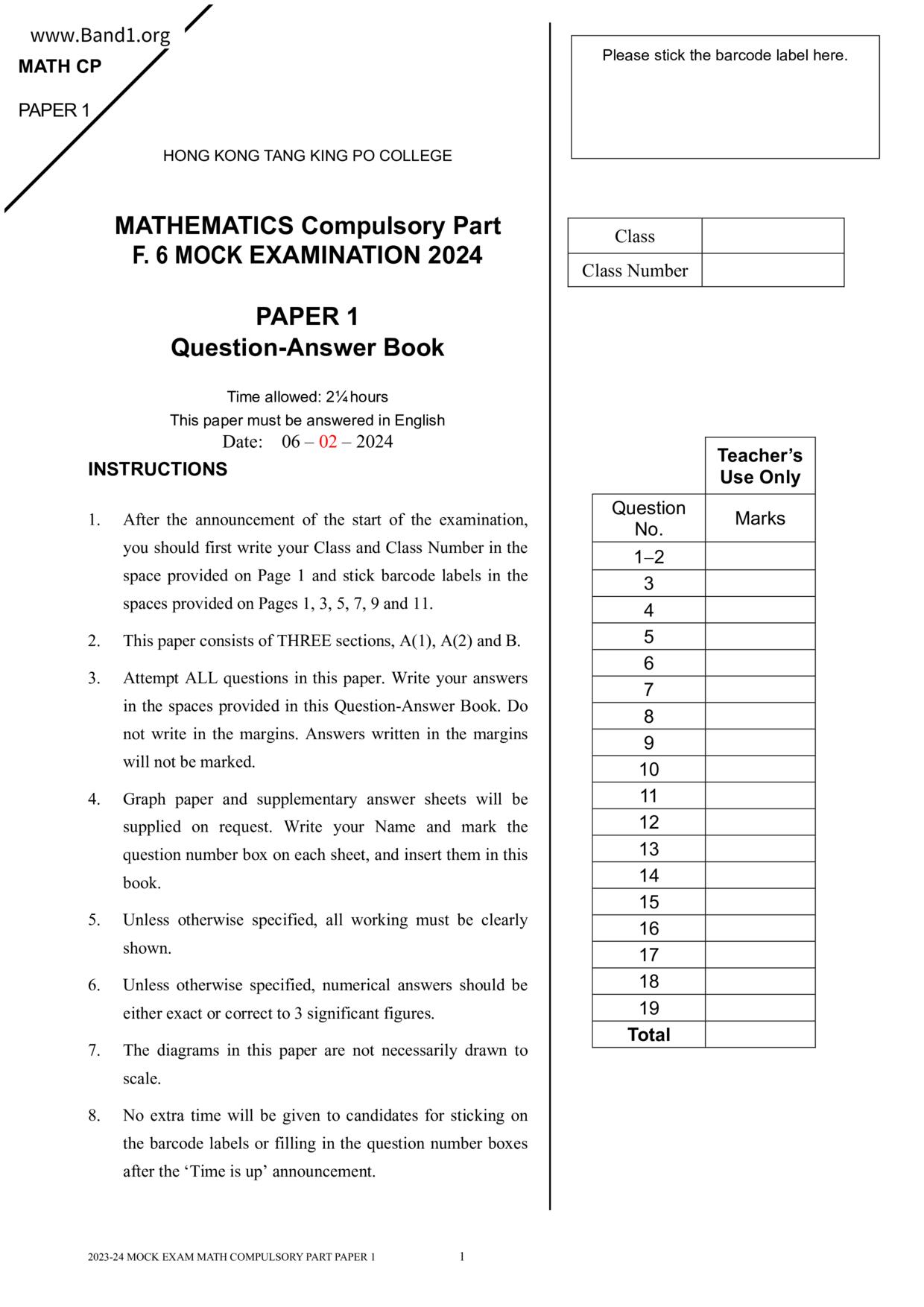 Deprecated: substr(): Passing null to parameter #1 ($string) of type string is deprecated in /home/band1.net/public_html/index.php on line 689 ★ 中小學數學試卷pdf Maths Past Paper - 香港中小學試卷pdf試題下載 ★