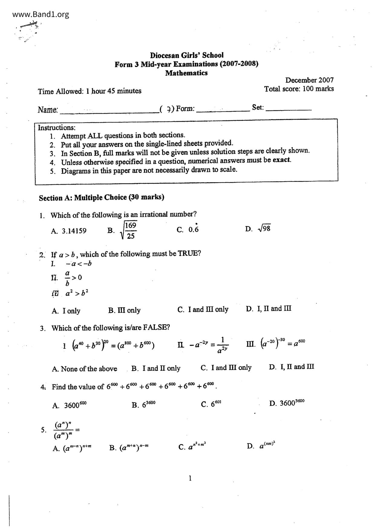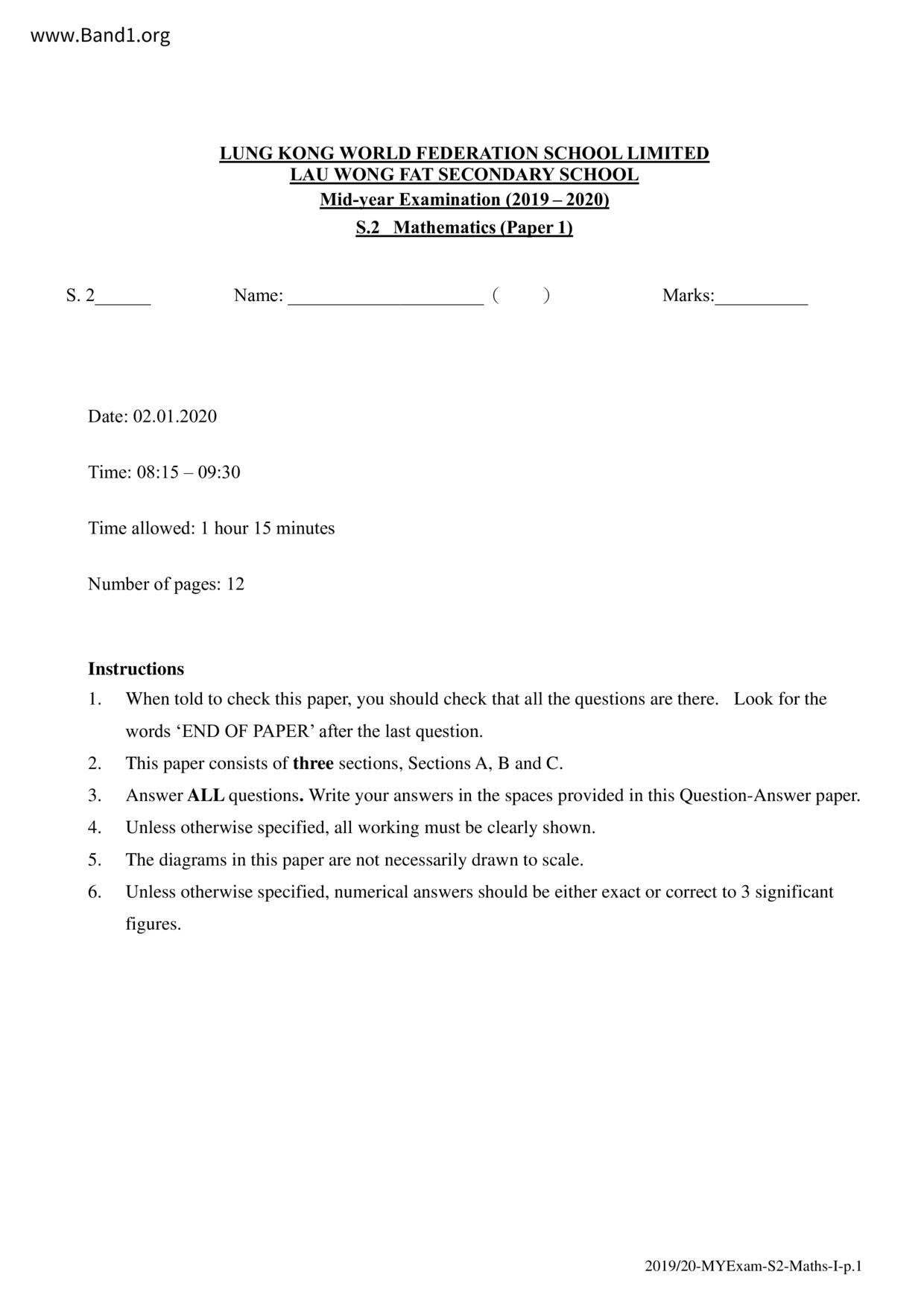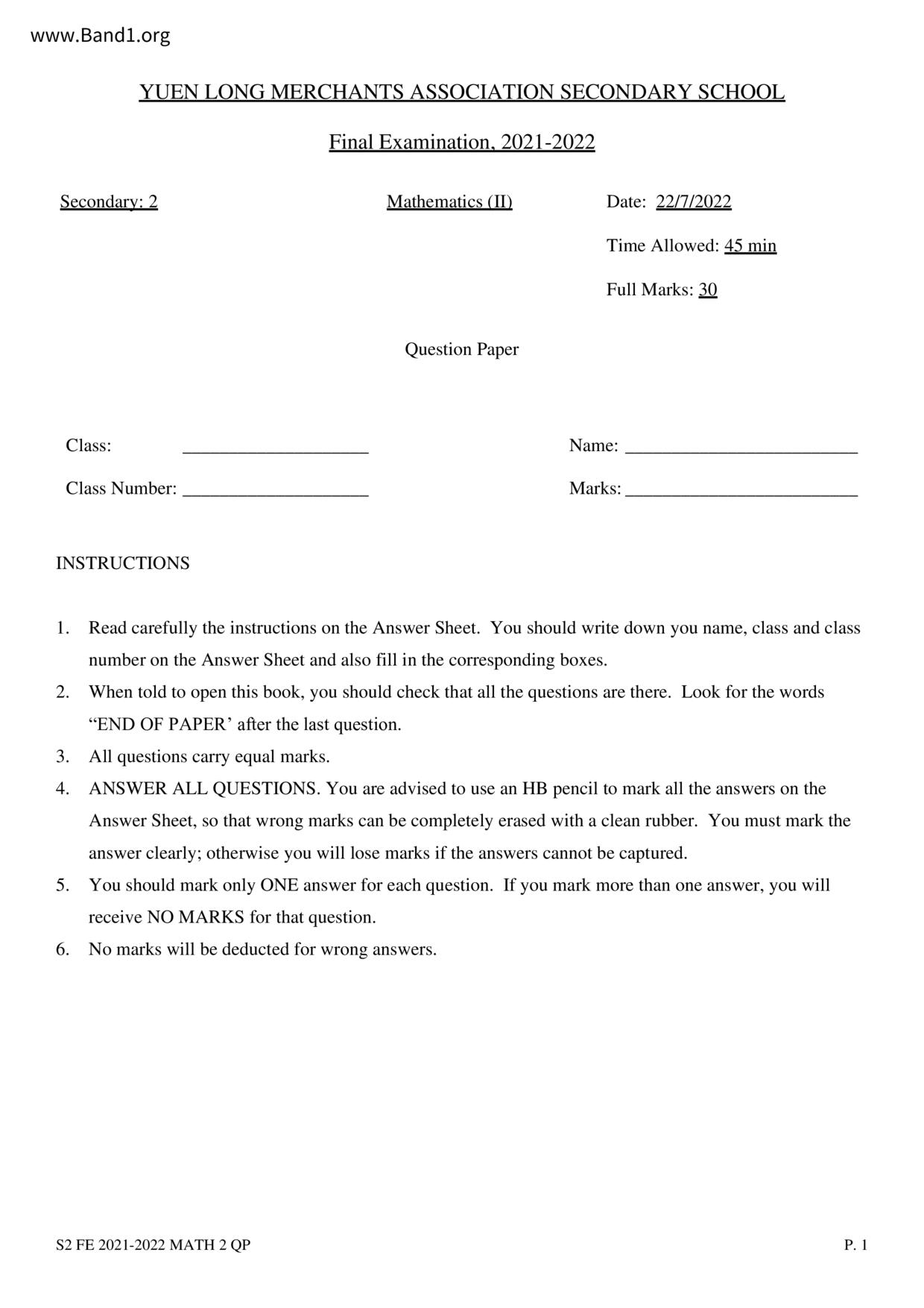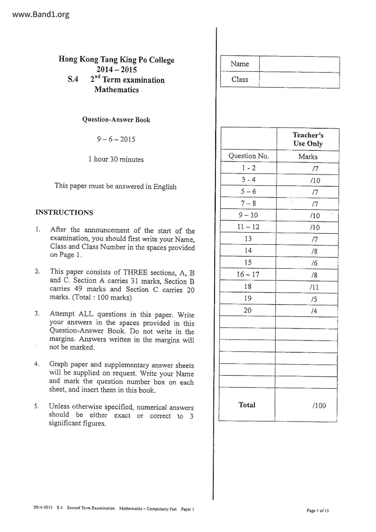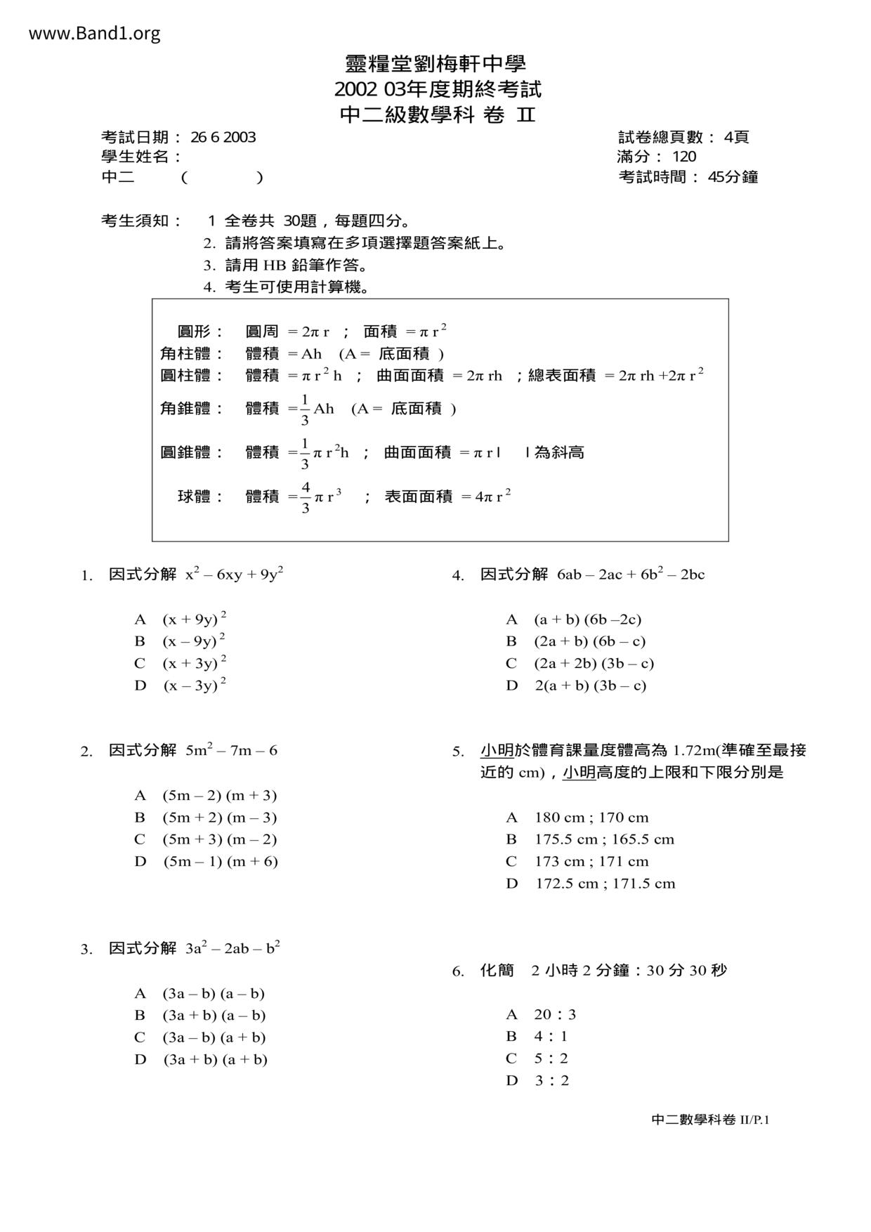 Deprecated: substr(): Passing null to parameter #1 ($string) of type string is deprecated in /home/band1.net/public_html/index.php on line 689 ★ 中小學數學試卷pdf Maths Past Paper - 香港中小學試卷pdf試題下載 ★