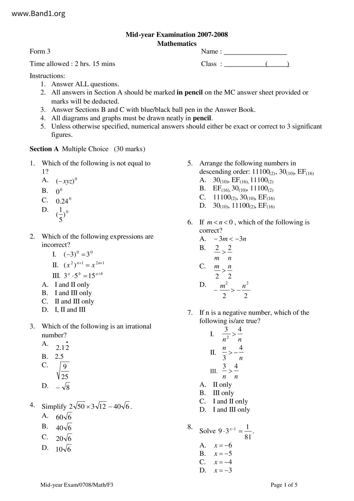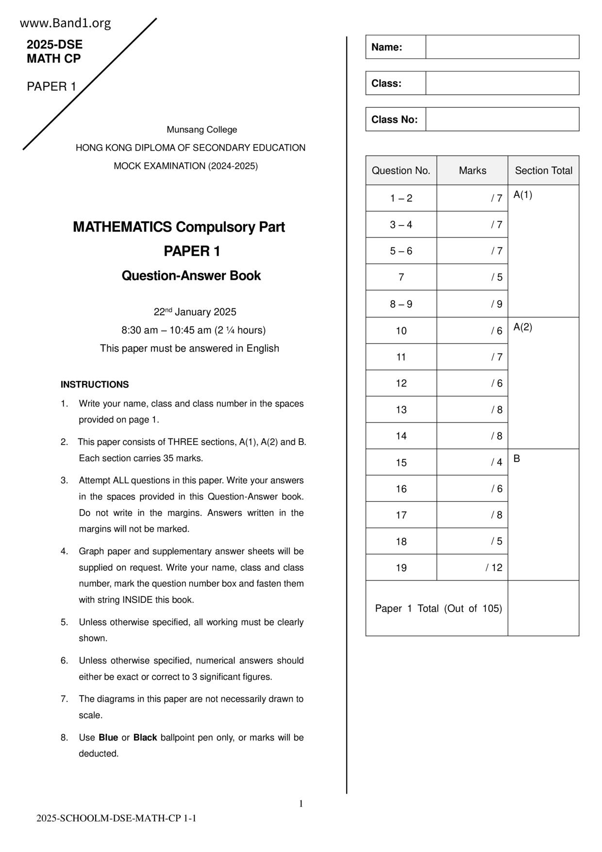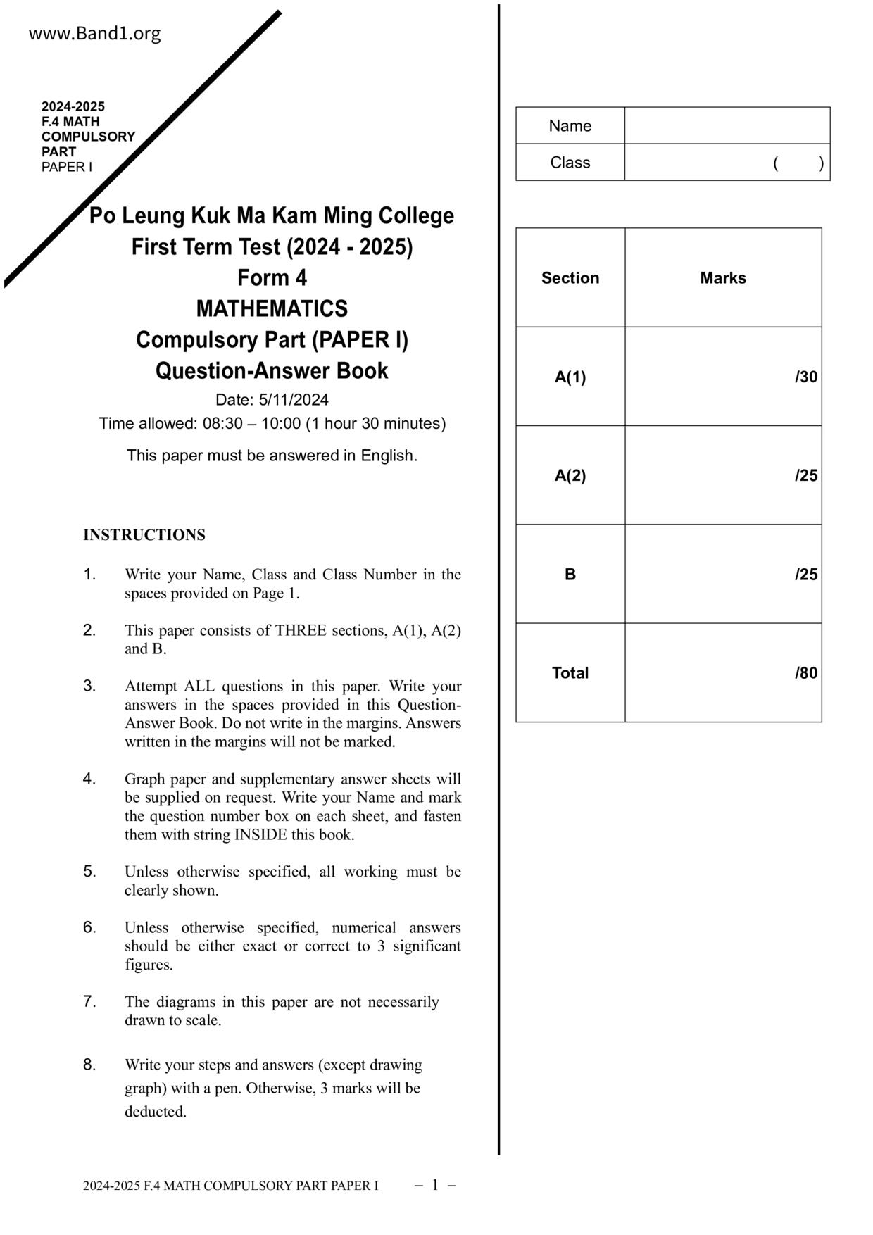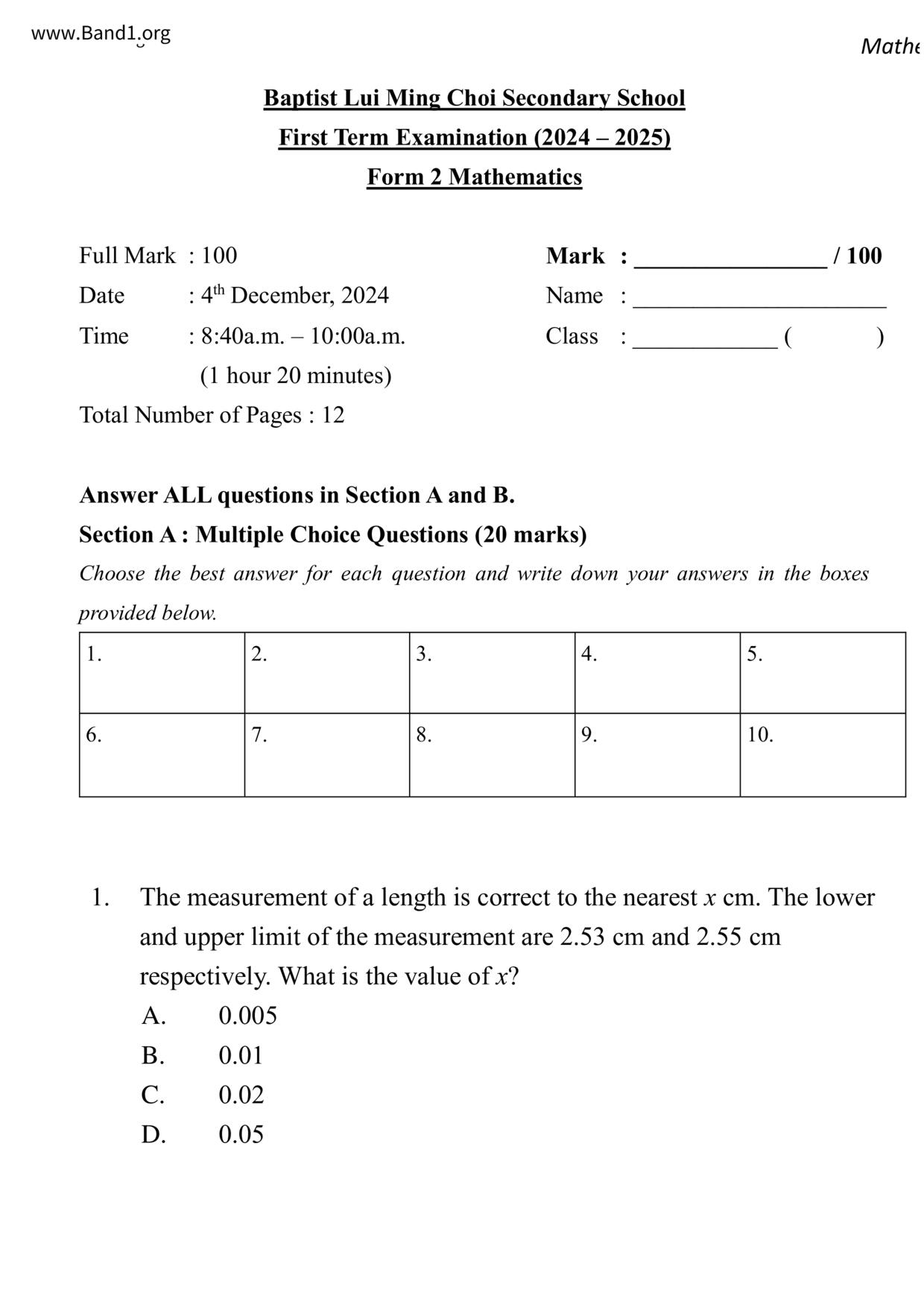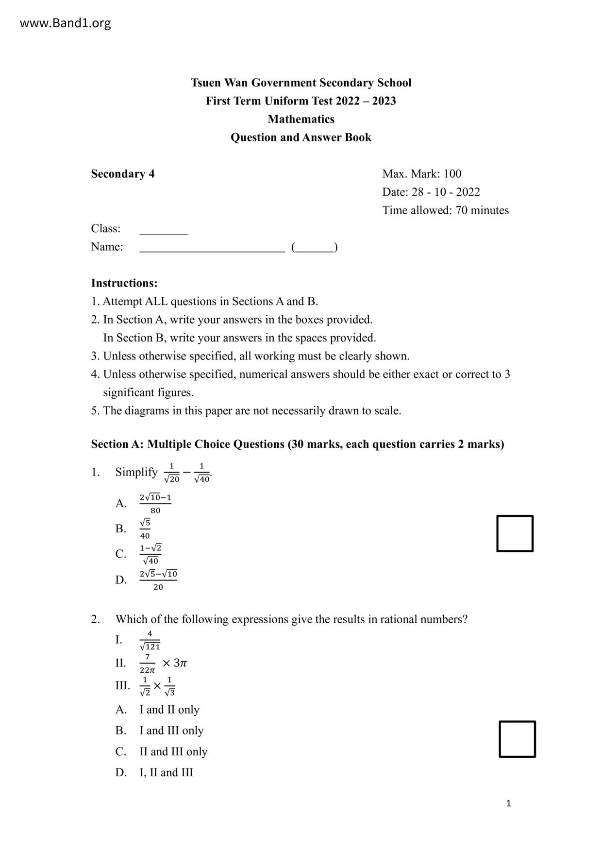 Deprecated: substr(): Passing null to parameter #1 ($string) of type string is deprecated in /home/band1.net/public_html/index.php on line 689 ★ 中小學數學試卷pdf Maths Past Paper - 香港中小學試卷pdf試題下載 ★