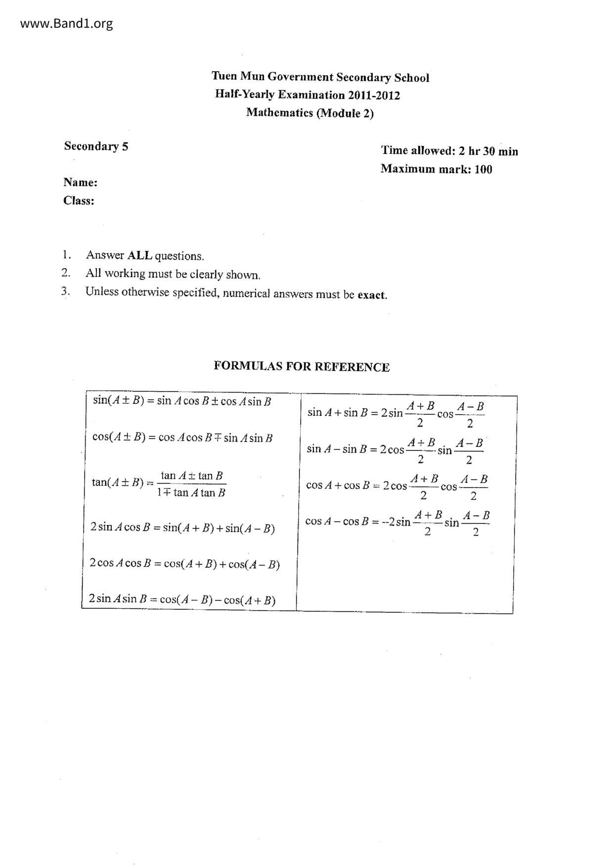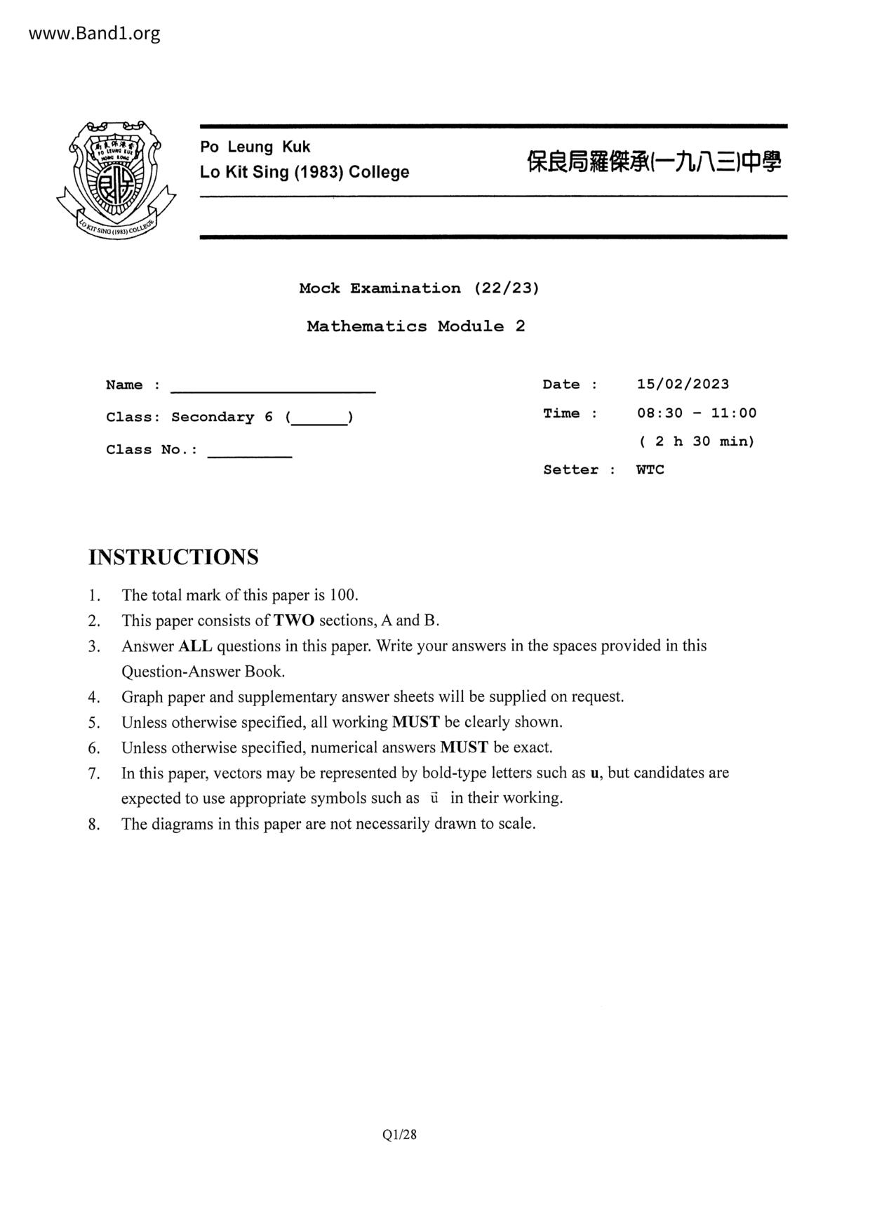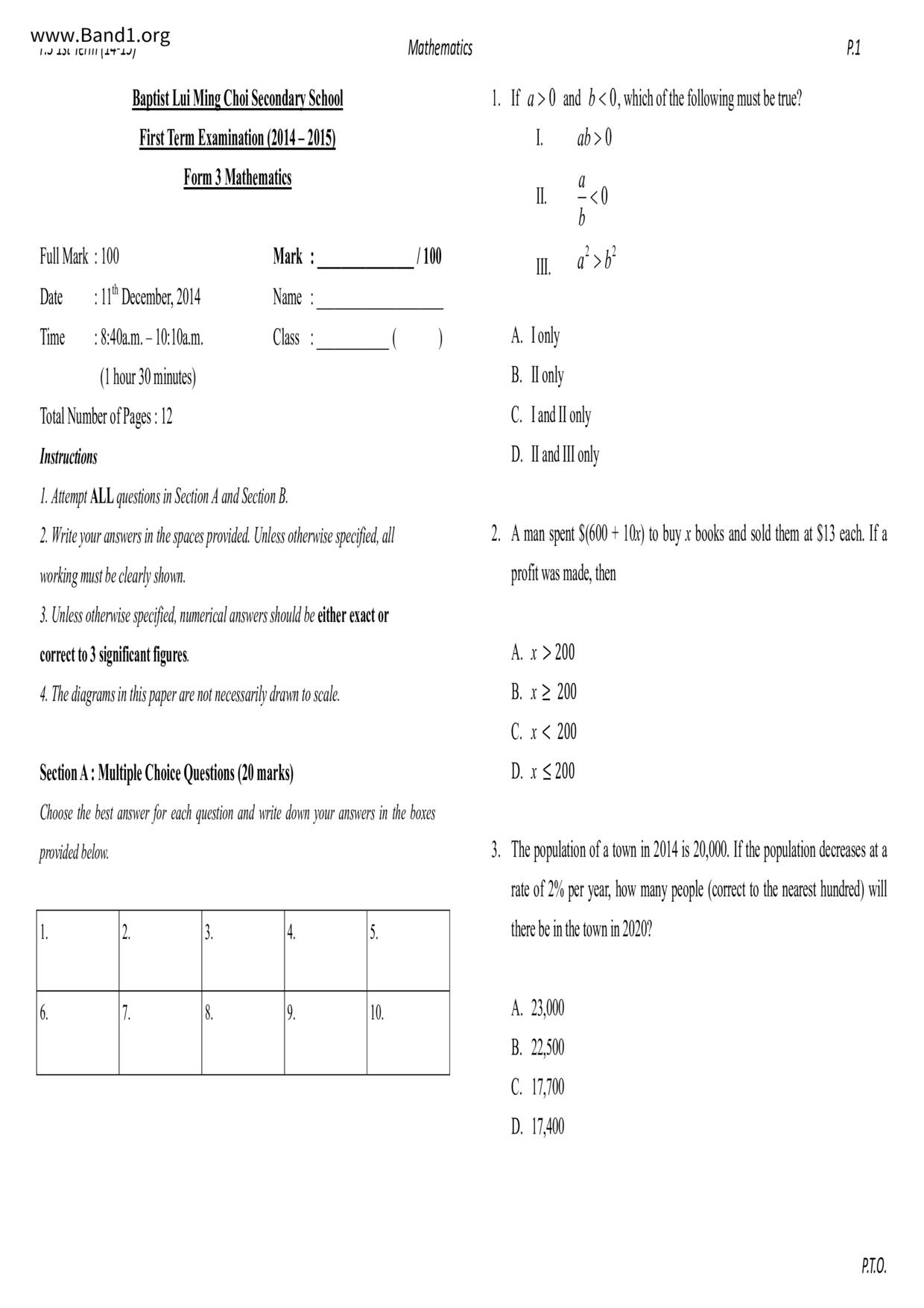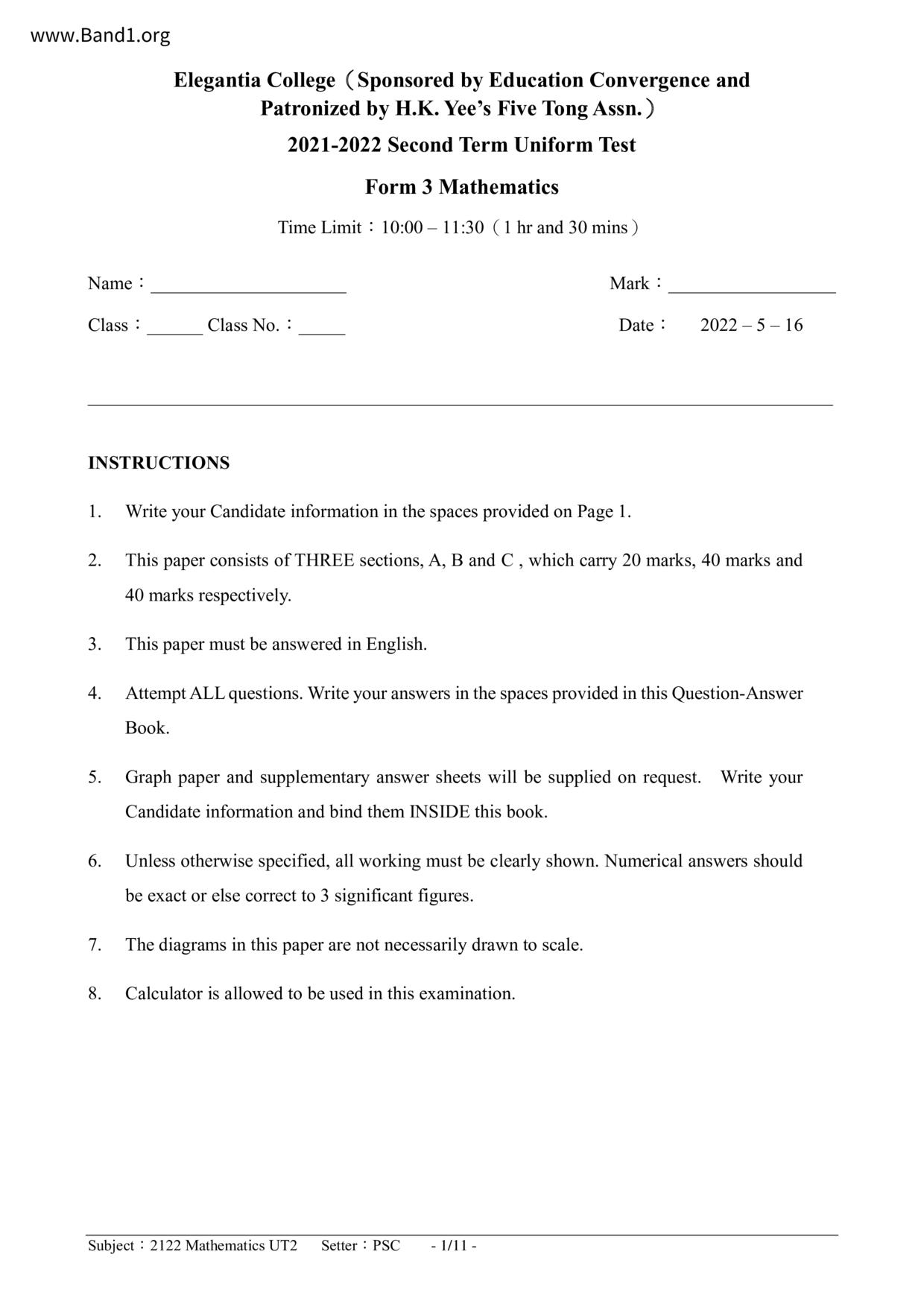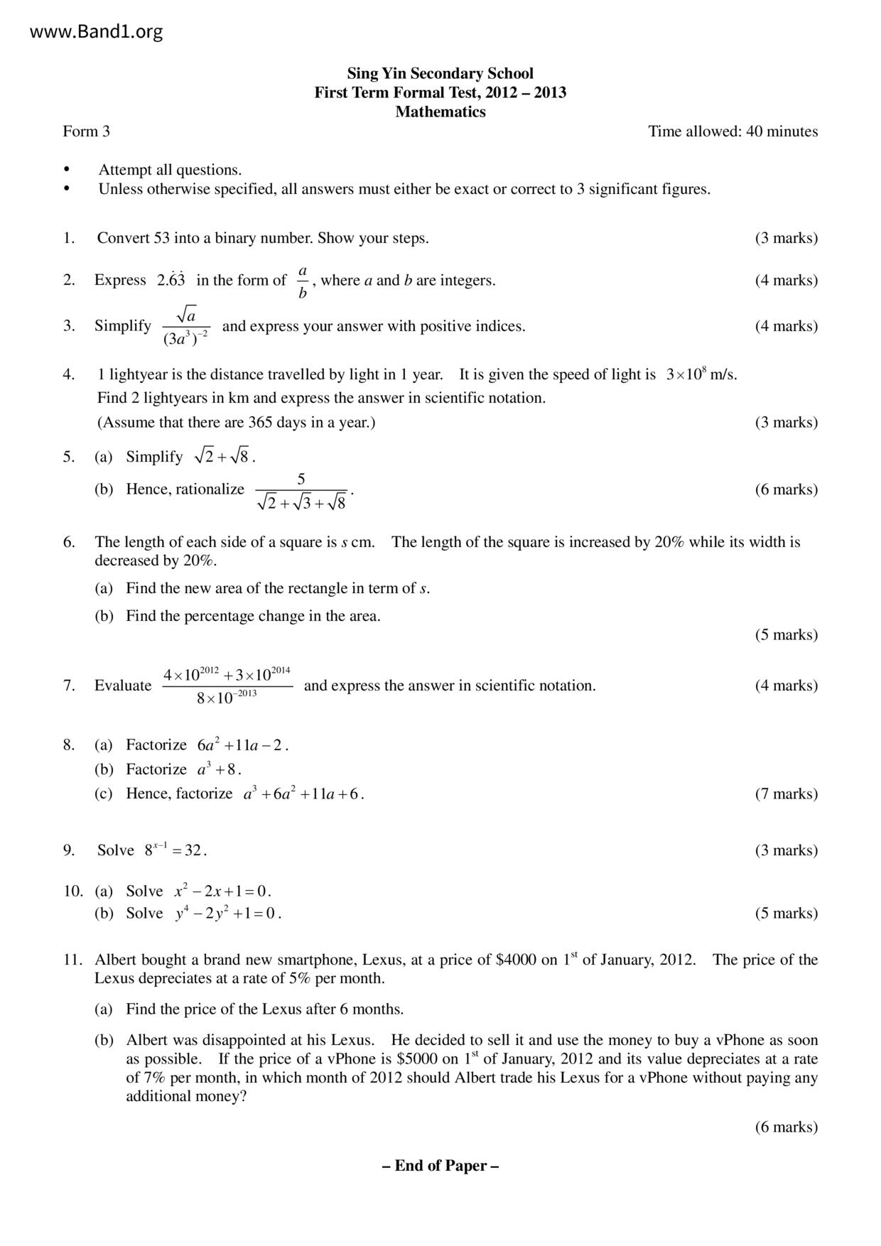 Deprecated: substr(): Passing null to parameter #1 ($string) of type string is deprecated in /home/band1.net/public_html/index.php on line 689 ★ 中小學數學試卷pdf Maths Past Paper - 香港中小學試卷pdf試題下載 ★