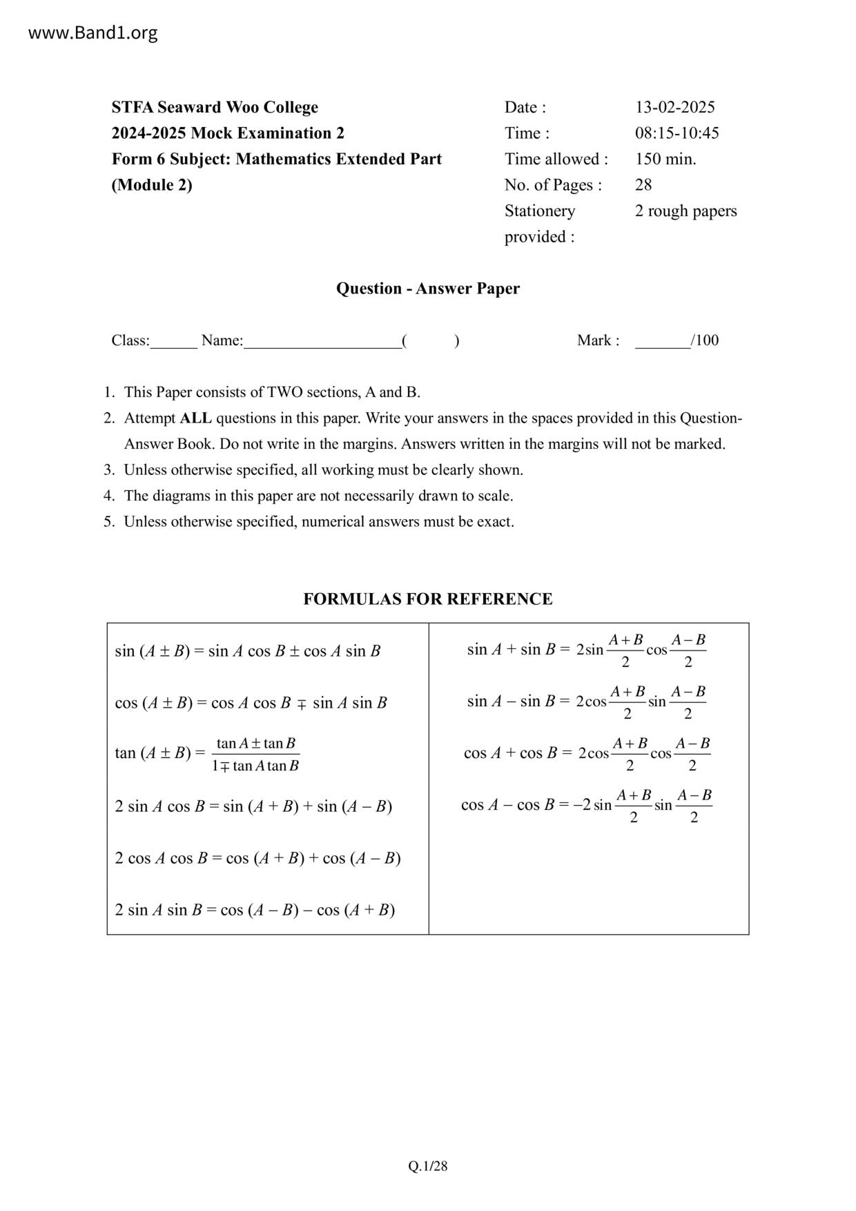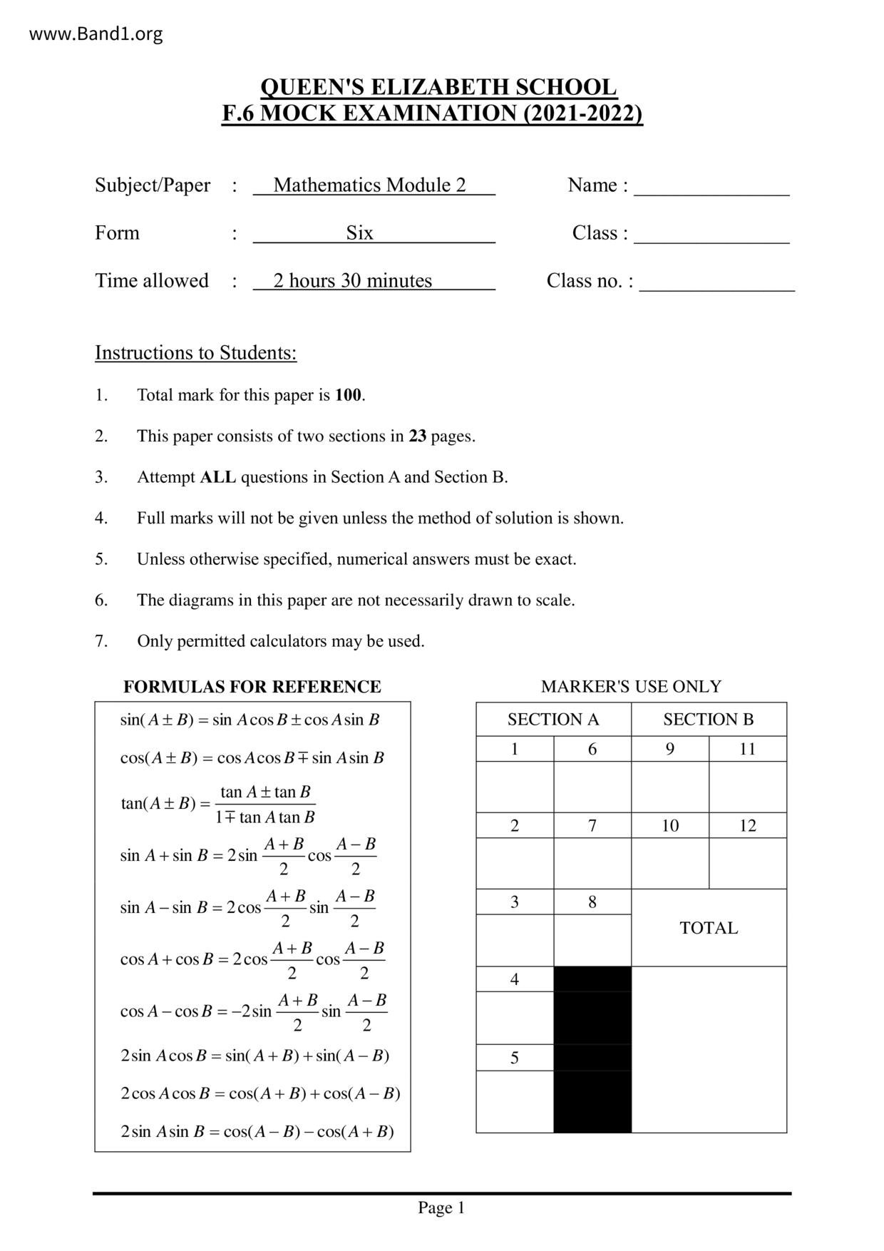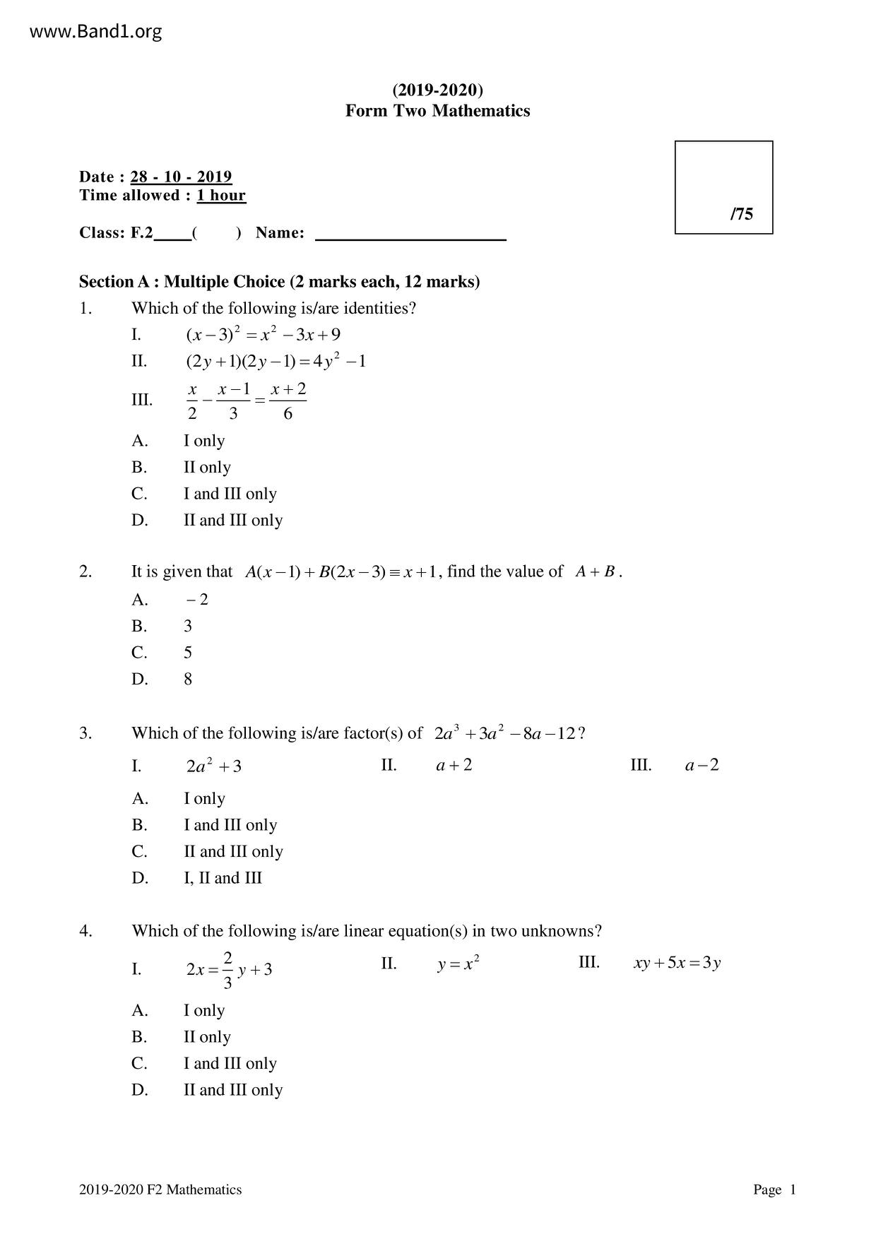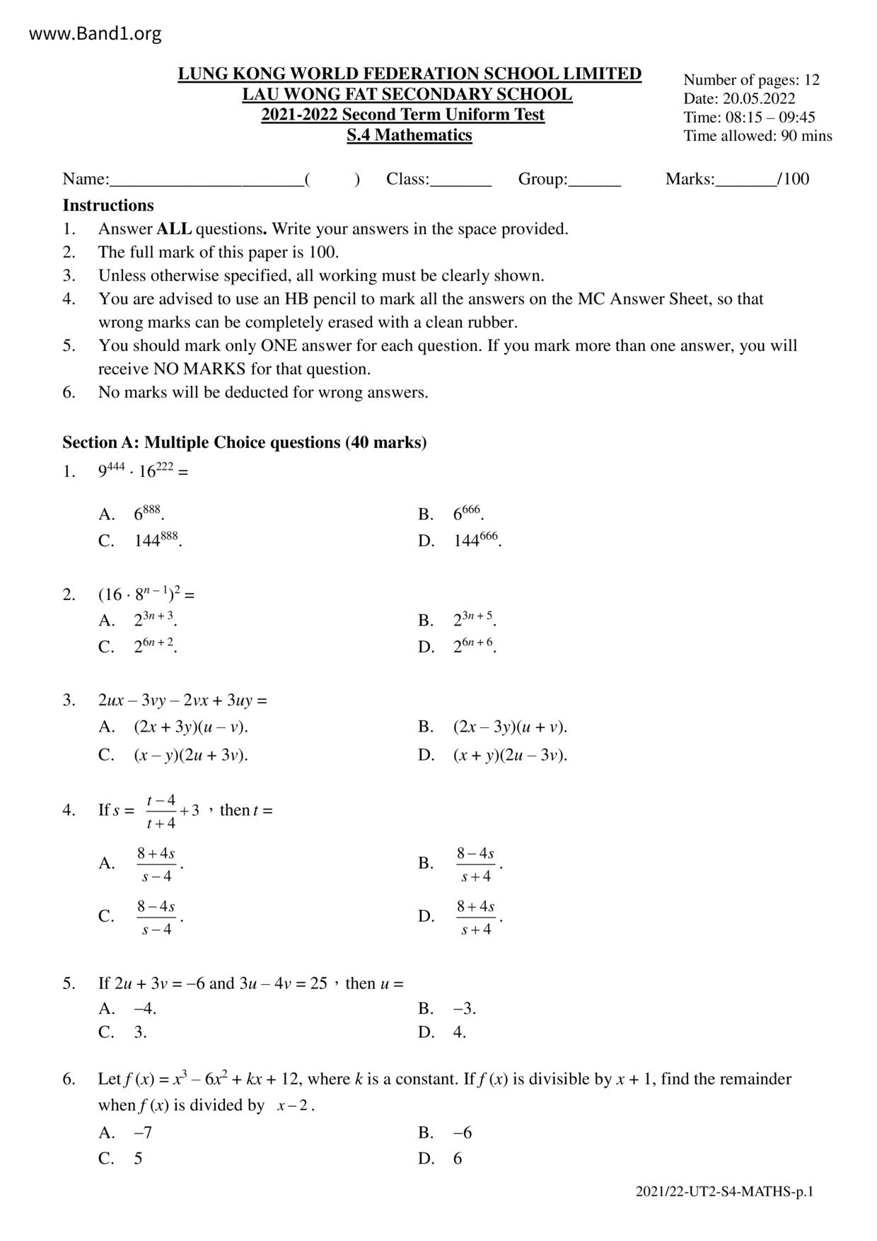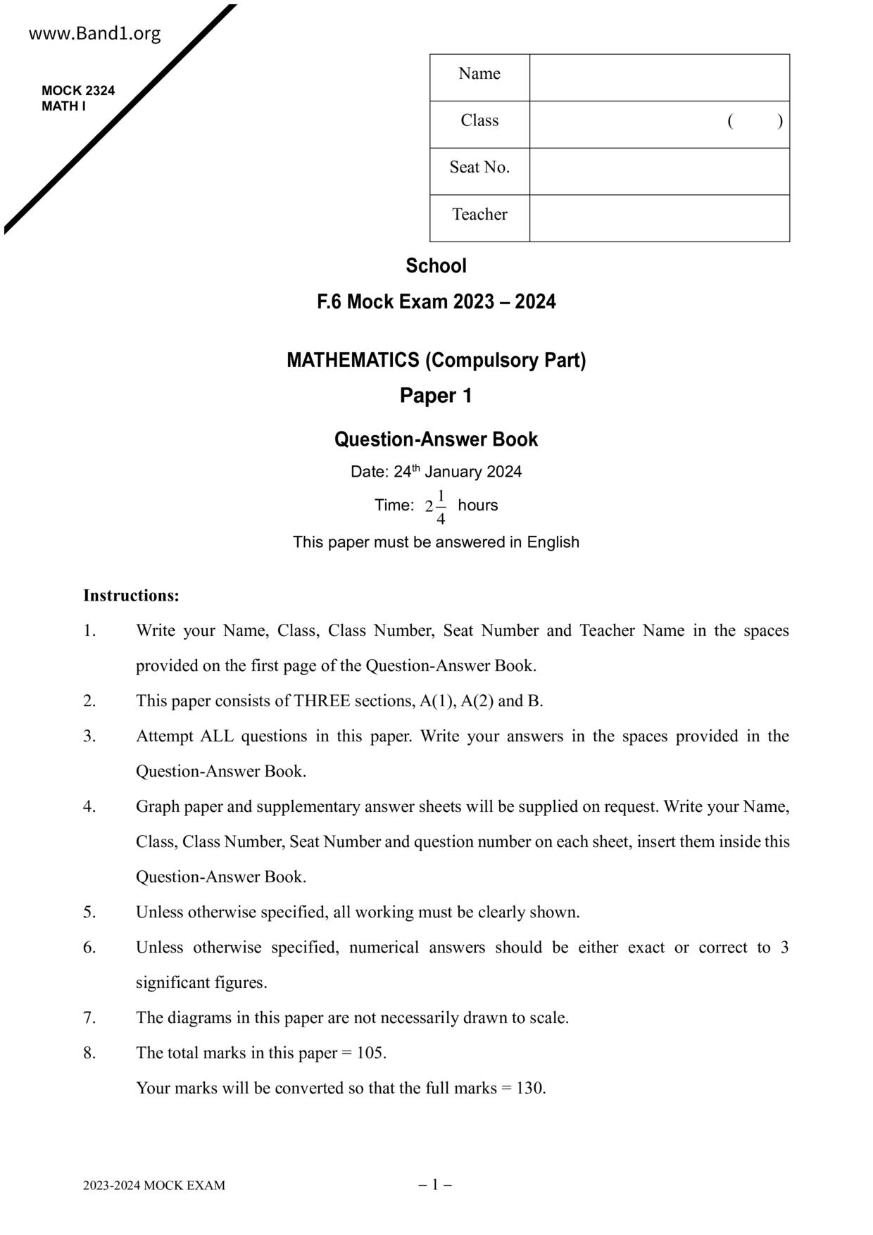 Deprecated: substr(): Passing null to parameter #1 ($string) of type string is deprecated in /home/band1.net/public_html/index.php on line 689 ★ 中小學數學試卷pdf Maths Past Paper - 香港中小學試卷pdf試題下載 ★